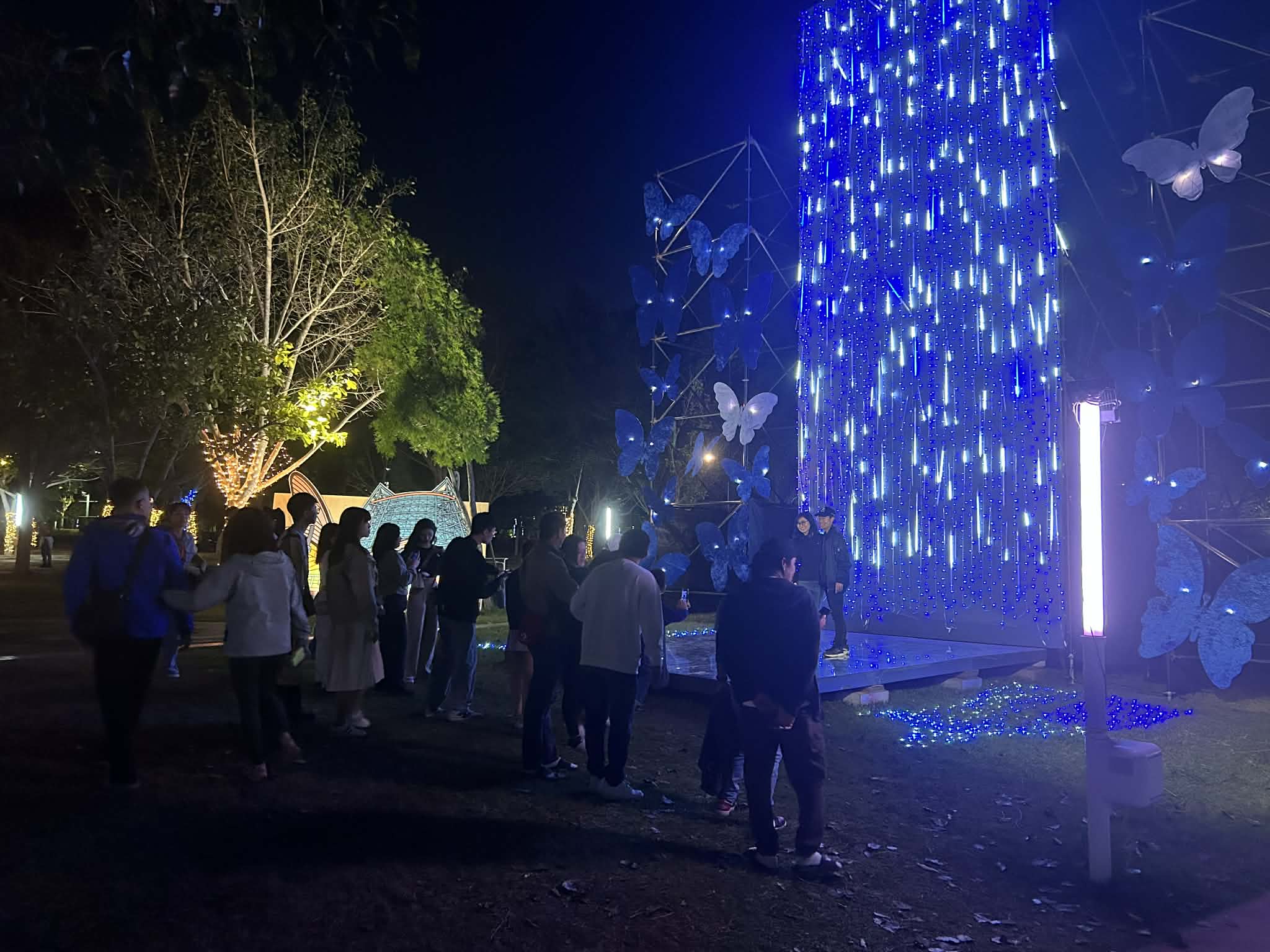 幻蝶瀑布絢麗燈組吸引眾多民眾拍照留念