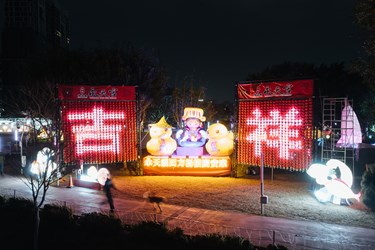 永天小鴨護駕媽祖!民政局幸福祈願村「永天光耀」燈組萌翻中央公園 永天宮加碼抽獎及送錢母、小鴨燈籠
