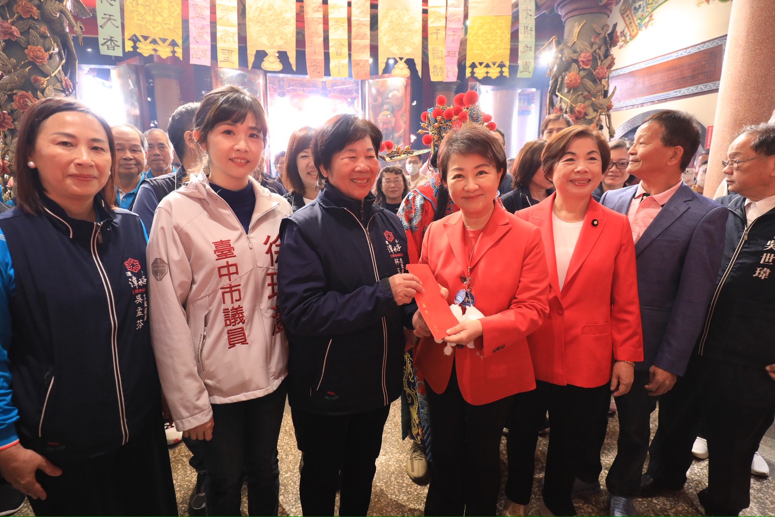 喜迎金馬年!大年初一台中市長盧秀燕一早展開宮廟走春行程,接連前往大里區七將軍廟、西屯區永安宮、潭子區潭水亭及龍井區龍泉岩為市民參香祈福,並發送「馬到金來」小紅包分享新春喜氣。現場民眾大排長龍,甚至有民眾昨晚11點就來排隊,只為了搶得新春好彩頭。盧市長除了向市民拜年祝賀外,也向神明祈福許下三個心願:期盼國泰民安、市政昌隆、廟宇香火鼎盛,迎接福兆一整年。