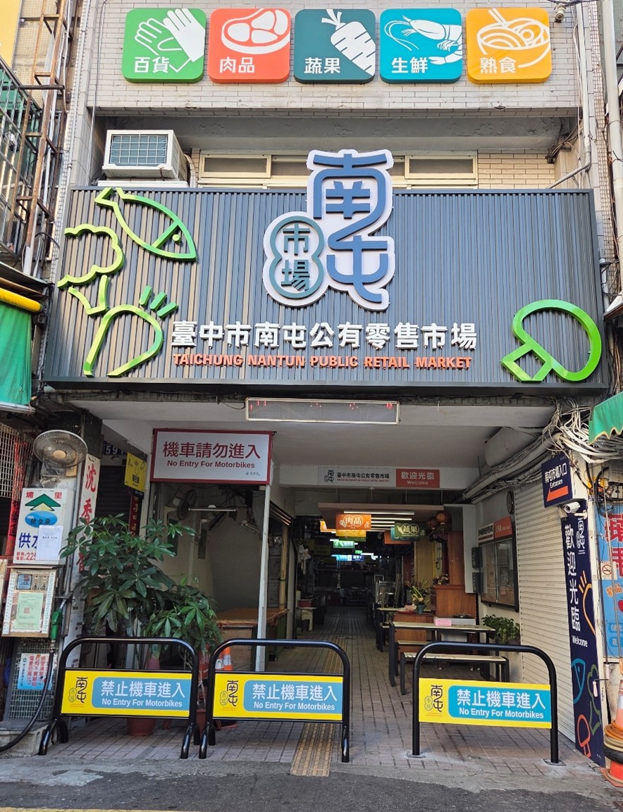 經發局指出,緊鄰萬和宮與南屯老街的南屯市場,不僅匯聚道地美食,更是台中重要的文化觀光熱點。在113年市場啟動美學升級計畫,針對入口照明進行強化與牆面粉刷,大幅提亮空間氛圍;內部導入標準化的攤位招牌與燈箱式指引系統,並透過木格柵天花板與迎賓牆打造溫馨休憩區,成功將傳統市場轉型為兼具整潔、安全與美感的友善採買空間。