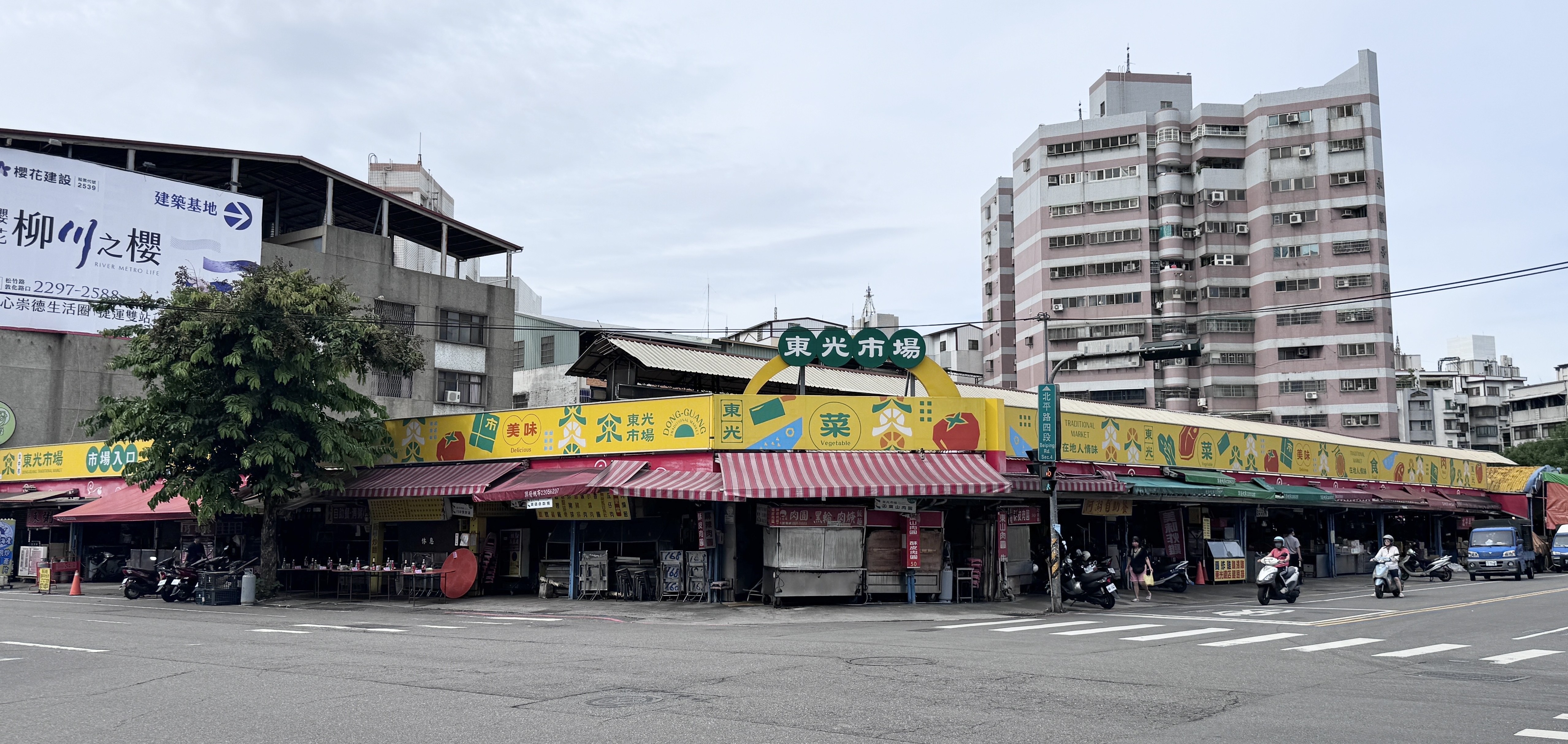 位於北屯區的東光公有市場,則成功導入以「由東方升起的日光」為核心的全新品牌識別,並重點強化入口意象,有效解決過往辨識度不足的問題。在軟硬體同步提升的帶動下,市場於113年首度榮獲「四星優良市集」殊榮;同時,攤商亦展現強大經營實力,「大山肉舖」與「正宏水果行」脫穎而出勇奪「四星樂活名攤」榮耀,共同打造出兼具美感與活力的採買新地標。