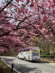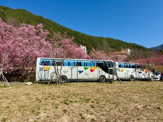 交通局提醒,武陵櫻花季期間持續實施交通管制,僅限持通行證或搭乘大眾運輸工具之遊客進入管制區。台中市民持綁定的交通卡或市民限定乘車碼,持手機輕鬆掃碼上下車,搭乘市區公車前往梨山,可享「雙十公車優惠」,即搭公車10公里內免費、超過10公里最多僅需 10元車資 。
