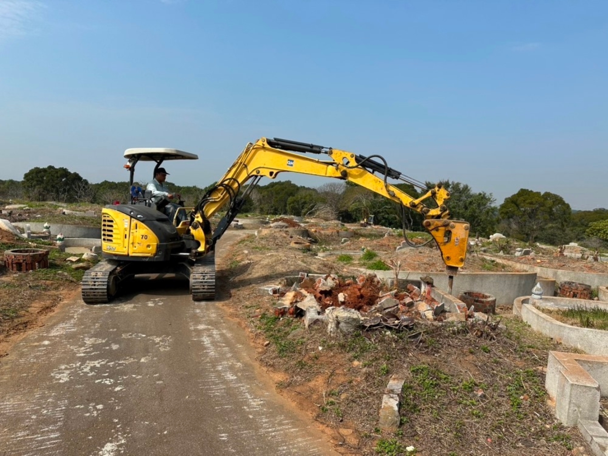 吳局長指出,傳統公墓墓道多半狹窄彎曲,加上兩側雜草叢生,不僅影響整體景觀,也增加民眾步行風險,更限制消防車輛與救災人員進出效率,為提升民眾祭祖時的安全與便利性,市府此次優先針對全市11處曾發生火災案件或具改善需求的公墓進行改善,拓寬整平墓道兩側已起掘的空墓區域,適度增加通行空間,讓車輛更方便會車、停靠及迴轉,也預留必要的緊急通行動線,解決公墓「無路可停、無地可迴」的救災瓶頸,全面提升防災韌性。