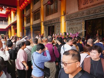 鄭副市長表示,三陽玉府天宮於民國58年在大肚區社腳里奠基建宮,主祀玉皇上帝,民國68年因原址空間不足遷至龍井區龍崗里現址,為地上三層、地下一層的宏偉殿宇,堪稱全台規模最大的天公廟,更以「三大」特色聞名,包括高達兩層樓、重約15公噸,號稱全台最大尊的玉皇大帝像,還有直徑2公尺、重達3噸的巨型天公爐,以及紅底金龍盤繞的大龍香。此外,廟內60首籤詩為首任住持曾文姬感應玉皇上帝旨意撰寫,素以靈驗著稱,信徒遍及全台,甚至遠從日本前來參拜,展現其深厚信仰影響力。