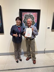 臺中市大墩文化中心於新歲之際推出鑲嵌藝術大師簡源忠教授《若水 靜謐而流動》,是場極具「重量級」的藝術盛宴。市府文化局長陳佳君今(21)日出席開幕式,見證首度公開的巨幅馬賽克作品〈母親之河—麻園頭溪〉,肯定簡教授對藝的術傳承與貢獻,另「若水」系列靈感則源自2021年市長盧秀燕祈雨,觸動藝術家以流經臺中的溪流為題。歡迎市民朋友在春節尾聲走進展場,感受這結合200萬片碎石、彩色玻璃與琉璃、歷時三年半才完成的城市光影律動創作。