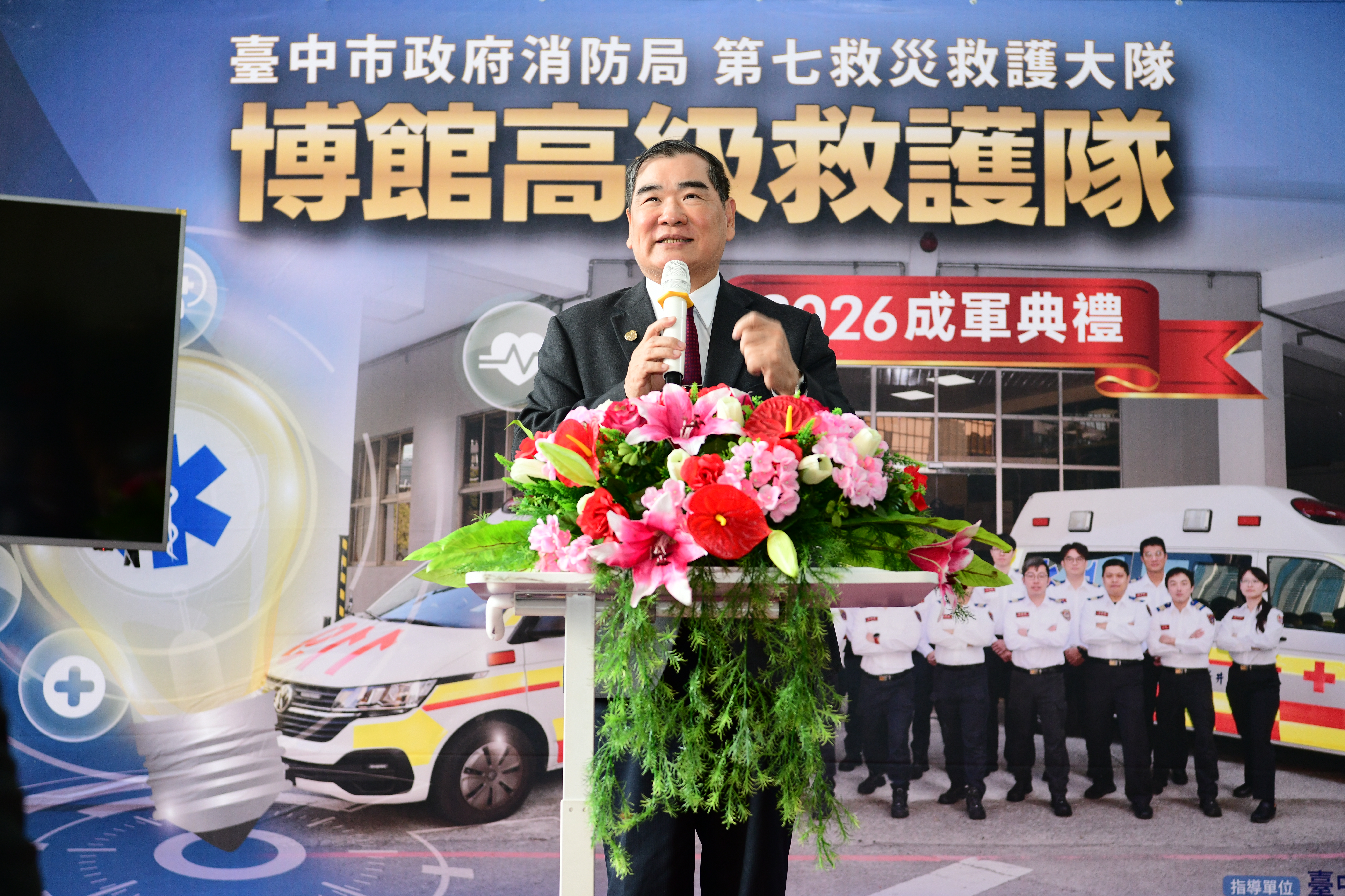 台中市政府消防局今(26)日舉辦「博館高級救護隊成軍典禮」,原有專責救護隊正式升級為高級救護隊,象徵到院前緊急醫療照護邁入新里程碑,消防局表示,此次升級不僅強化高階救護能量,更透過與醫療指導醫師的緊密合作,以及正式啟動葉克膜綠色通道,全面提升重症病患的存活機會。