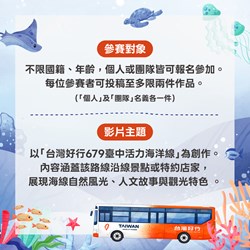 中市府觀旅局長陳美秀表示,這次活動旨在提升台中海線的觀光能見度與大眾運輸使用率。不同於傳統的觀光宣傳,徵件特別強調「個人風格」與「創新視角」,參賽者需以「679台中活力海洋線為核心」,規劃1至3分鐘的精彩影片,內容須涵蓋沿線景點或特約店家,並在作品中展現台灣好行品牌識別,讓大眾看見不一樣的海線景致。