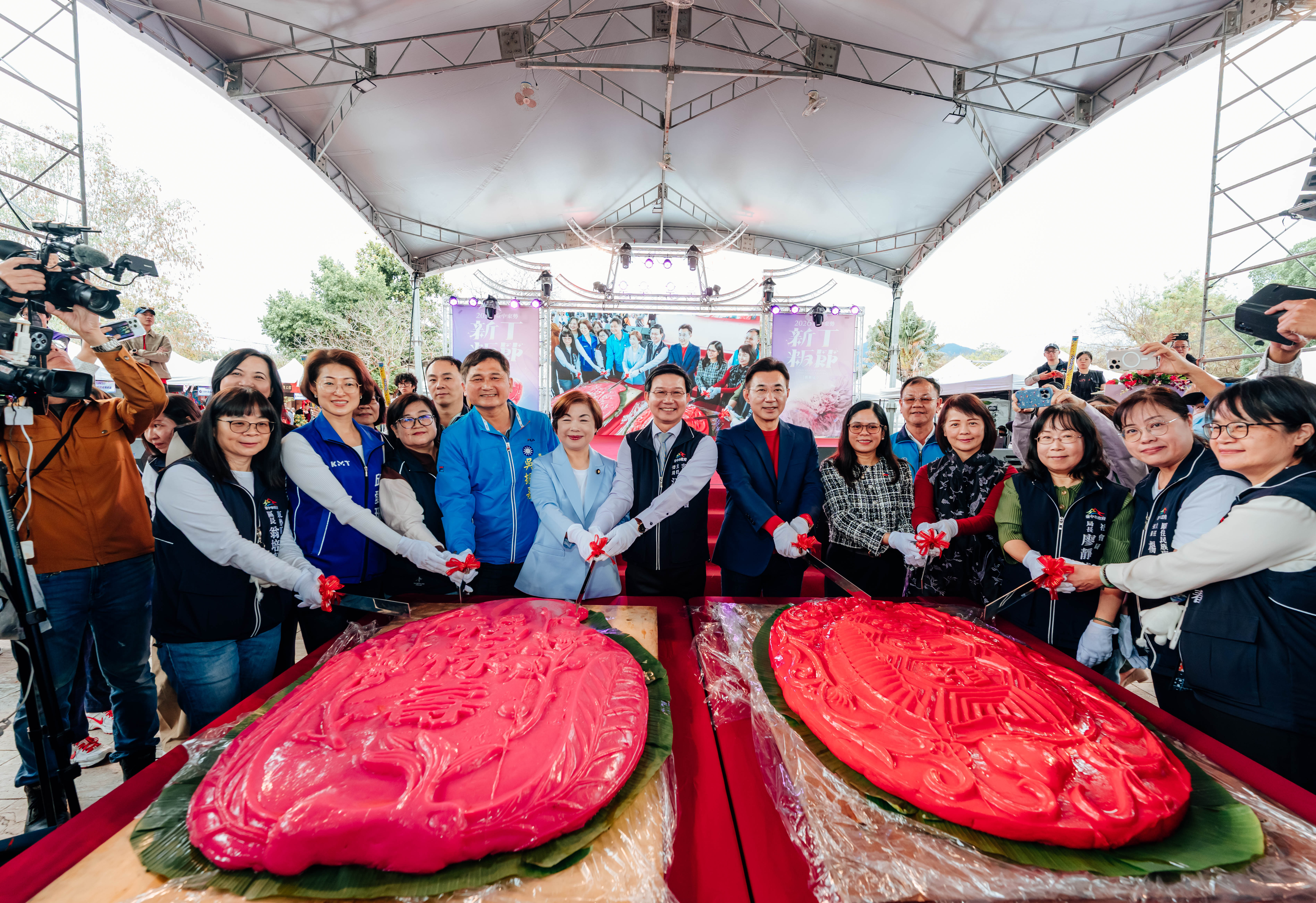江主委表示,新丁粄節在東勢是農曆新春的最高潮,而今年適逢馬年,新丁粄節「好運再加馬」,力求突破與創新,活動配合連續假期舉辦,讓更多遊客能參與這場年度客庄盛會,成功打響節慶品牌知名度;現場更展示重達120斤的超級新丁粄,龜粄與桃粄並列,霸氣十足,強調「全城參與、分享喜悅」讓整個山城動起來,歡迎全國民眾連假期間來東勢感受最不一樣的客家節慶。