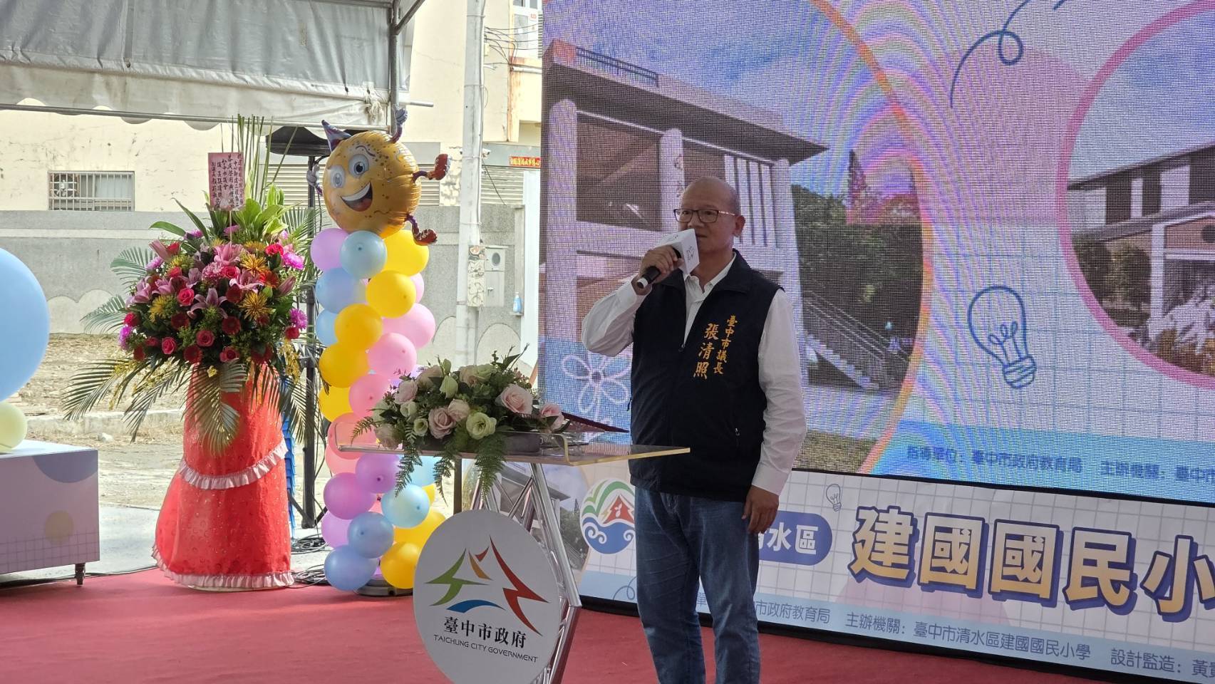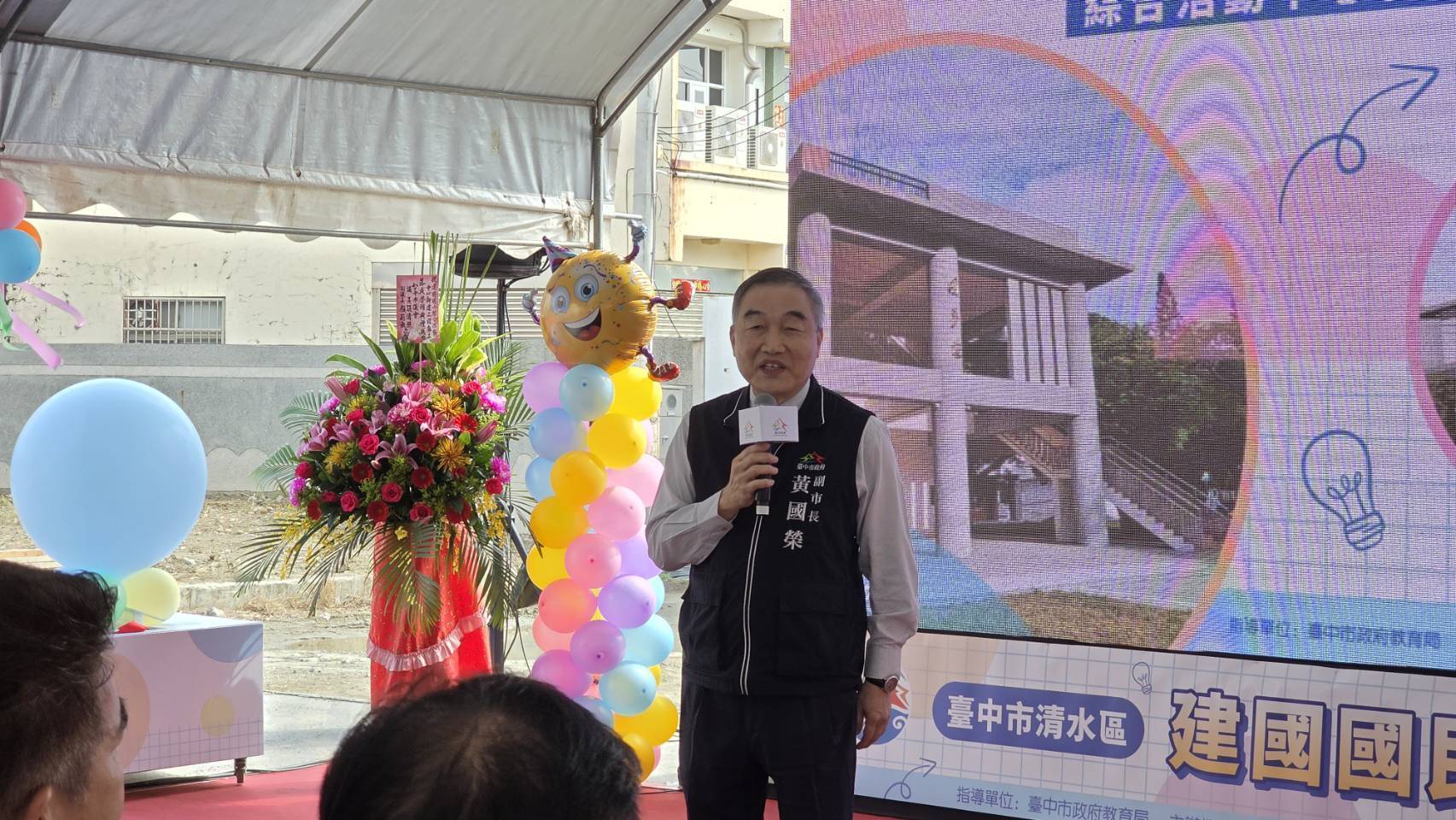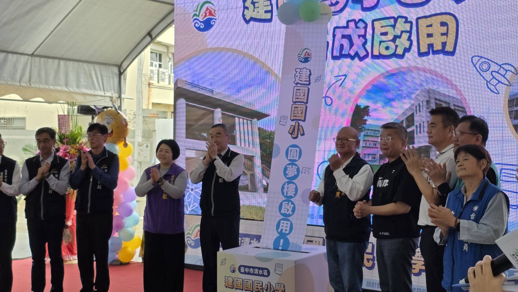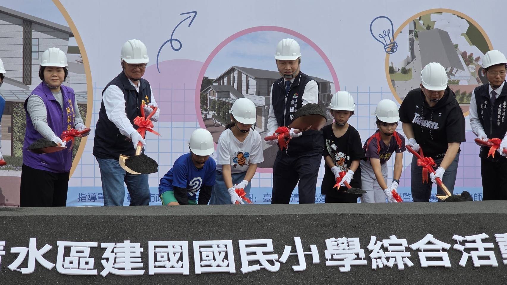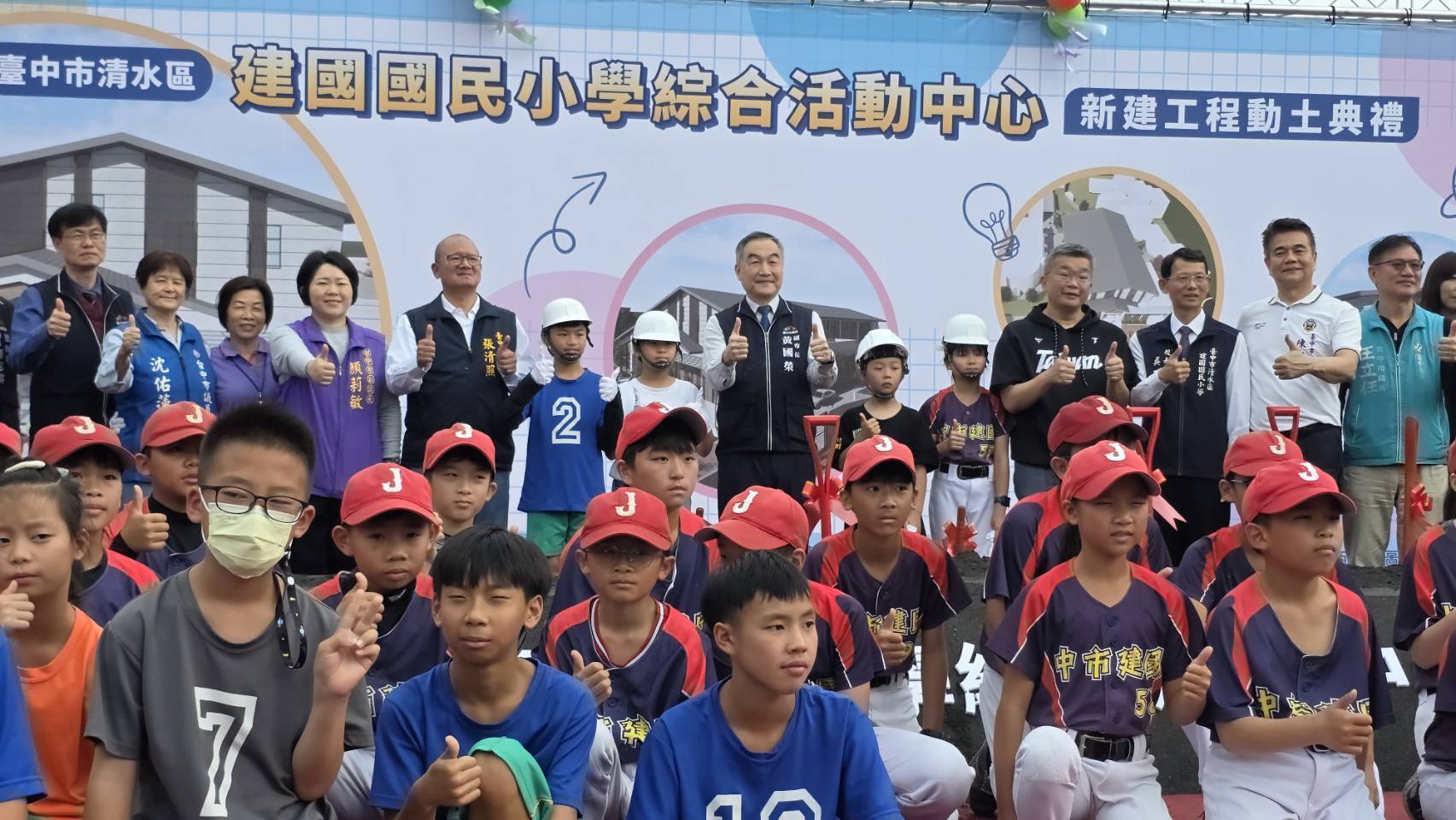 台中市清水區建國國民小學今(2)日舉行「綜合活動中心新建工程動土暨圓夢樓落成啟用典禮」,副市長黃國榮到場主持動土儀式,教育局長蔣偉民、地方民意代表、社區賢達、家長會及全校師生齊聚一堂,共同見證建國國小校園建設再升級的重要里程碑。