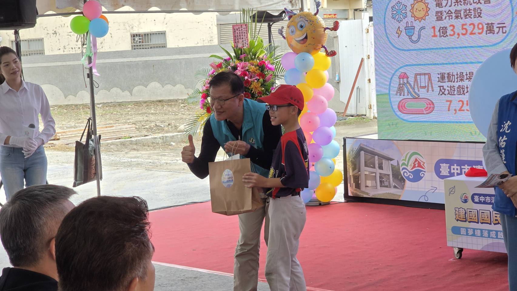 黃副市長指出,今日建國國小綜合活動中心新建工程啟動,總經費達新台幣9,440萬元,全部由市府自籌經費支應,過去曾因中社遺址考古作業一度停擺,目前中社遺址發現之考古出土遺物,正由發掘單位國立成功大學依規定進行整理作業及保存,活動中心工程則在市府全力協助下啟動,預計未來工程完工後,將提供學生更安全、舒適且多功能的活動空間,滿足體育教學、團體活動與大型集會需求,進一步提升校園整體機能。