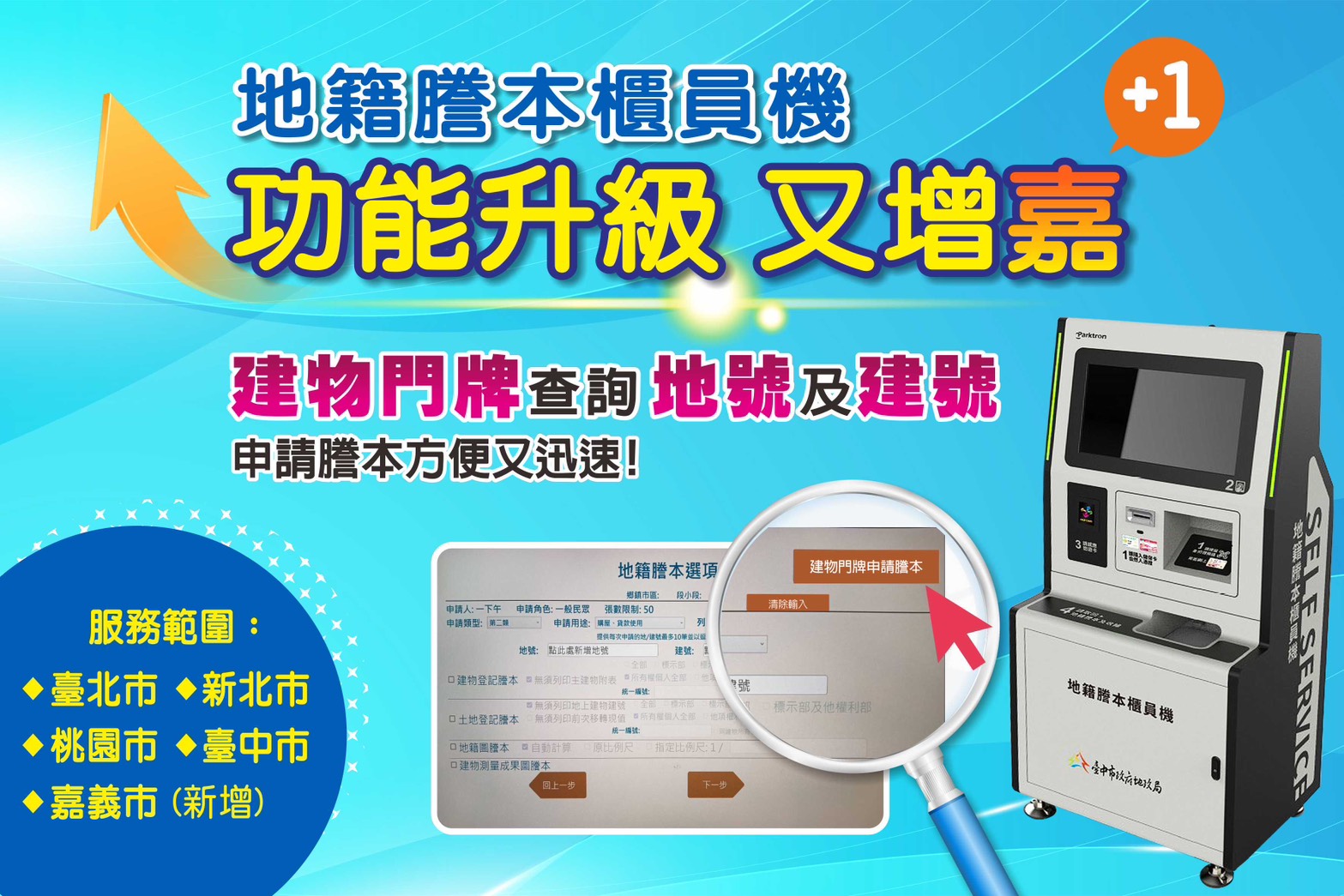 地籍謄本櫃員機服務升級 跨縣市申領再增「嘉」
