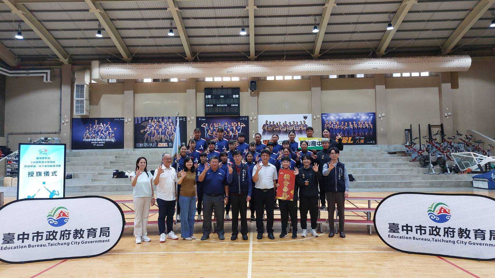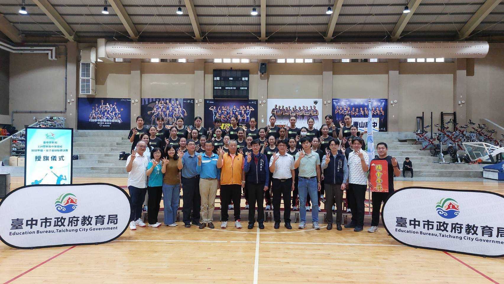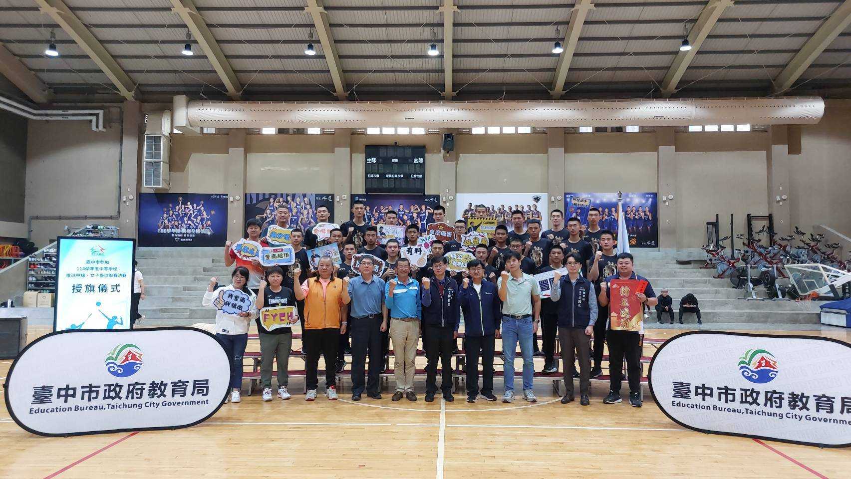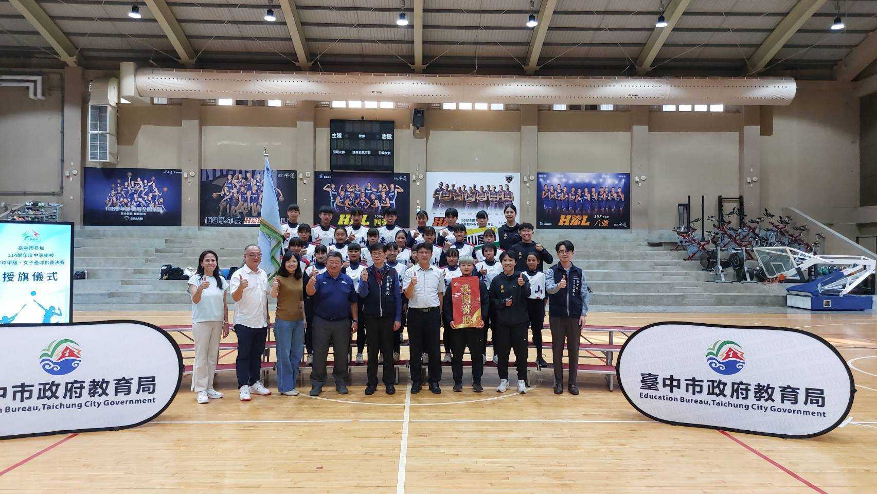 114學年度中等學校女子壘球聯賽(HSL)、中等學校排球甲級決賽(HVL、JHVL)將於3月接續開戰,台中市政府教育局長蔣偉民昨(2)日在「台中市籃球運動中心」為參加決賽的6隊選手們授旗,並代表市長盧秀燕致贈加菜金,為教練及選手們加油打氣,期許選手持續突破自己的極限,凱旋而歸。