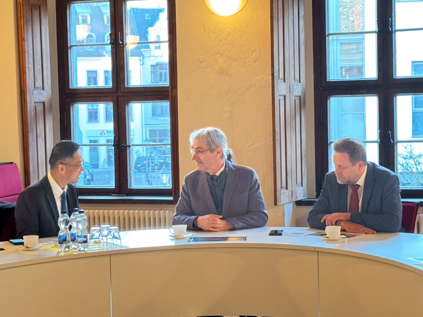 台中市政府經濟發展局於昨(2)日赴德國茨維考薩克森應用科技大學(Westsächsische Hochschule Zwickau, WHZ)交流參訪,由校長Stephan Kassel親自接待,並說明該校產業背景、研究資金模式及重點發展方向,強調結合理論研究與產業應用的辦學特色,並肯定台中在高科技與產學合作領域的具體成果。