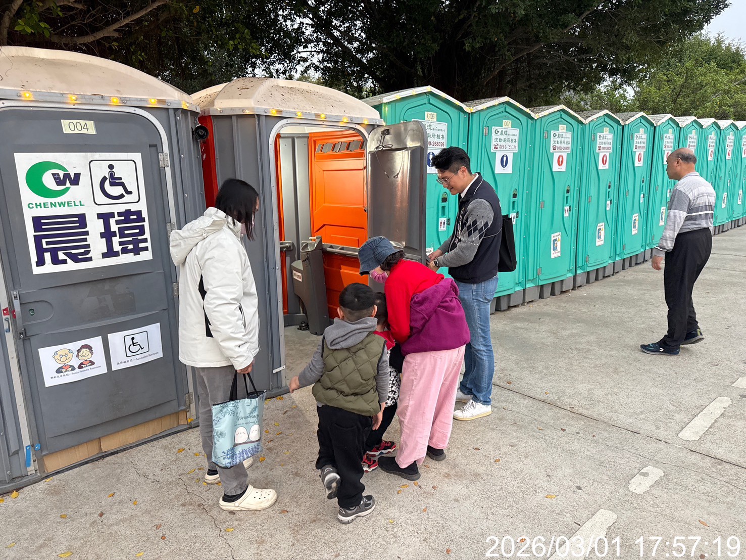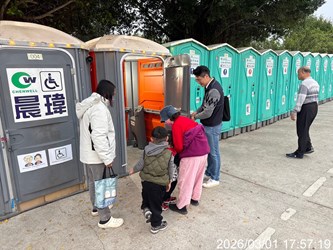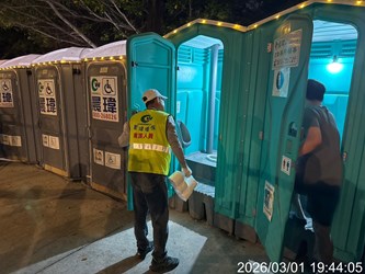 「多一份關懷、少一件事故。」環保局長吳盛忠表示,此次燈會環保局各處流廁點位均安排駐點專責人員隨時督導流廁清潔人員進行廁間清理工作,保持廁間整潔,也加強流廁照明及LED指引牌,同時積極引導長輩、行動不便者或孩童使用流廁設施,確保民眾如廁安全及品質,成功翻轉民眾對於大型活動租賃流動廁所既有髒亂、惡臭的負面刻板印象,感謝第一線人員辛勞付出,共同讓賞燈民眾感受到友善、乾淨、舒適又安心的優質如廁體驗。