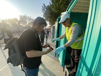林姓清潔人員表示,此次燈會活動期間使用廁所人潮眾多,為讓民眾使用到乾淨的流動廁所,同事們都很努力維持廁間環境整潔,即便活動期間有遇到下雨,著實提高不少清掃難度,透過增加廁間地板拖乾作業頻率,希望用具體行動讓使用過流廁設施的民眾都能感受到我們清潔人員滿滿的心意。
