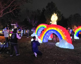 農業局表示,夜幕低垂時,漫步於光影交織的奇幻場景中,溫暖柔和的燈光映照出人與動物之間,純粹而真摯的情感連結。今年燈區以主角小白貓「喵喵」,帶領民眾穿越夢境通道開啟冒險之旅,沿途遇見許多不同動物,透過充滿故事性的燈光作品,引導觀展民眾認識野生動物面臨的困境、理解飼主責任與生命教育的重要,讓「動物有家、城市有愛」的精神深植人心。這趟旅程不僅留下難忘回憶,也蘊含深遠的教育意義。