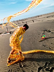 中美館館長賴依欣補充,自3月10日起,一系列行為表演將於綠美圖一樓公共空間展開。水田部落《C’est la Vie du Taiwan》推出為期一個月的行為演出,行為藝術家曾啟民依每日潮汐退潮時間進行創作,呈現原住民族文化與當代藝術交織的樣貌;3月29日,由藝術家柯德峰、高琇慧組成的行為藝術團體-天團帶來《莫比斯環上的遠方》,融合繪畫、裝置與身體表演元素。4月12日為展期最後一天,天團將與水田部落聯合演出,以跨團隊共創為「萬物的邀約」劃下圓滿句點。