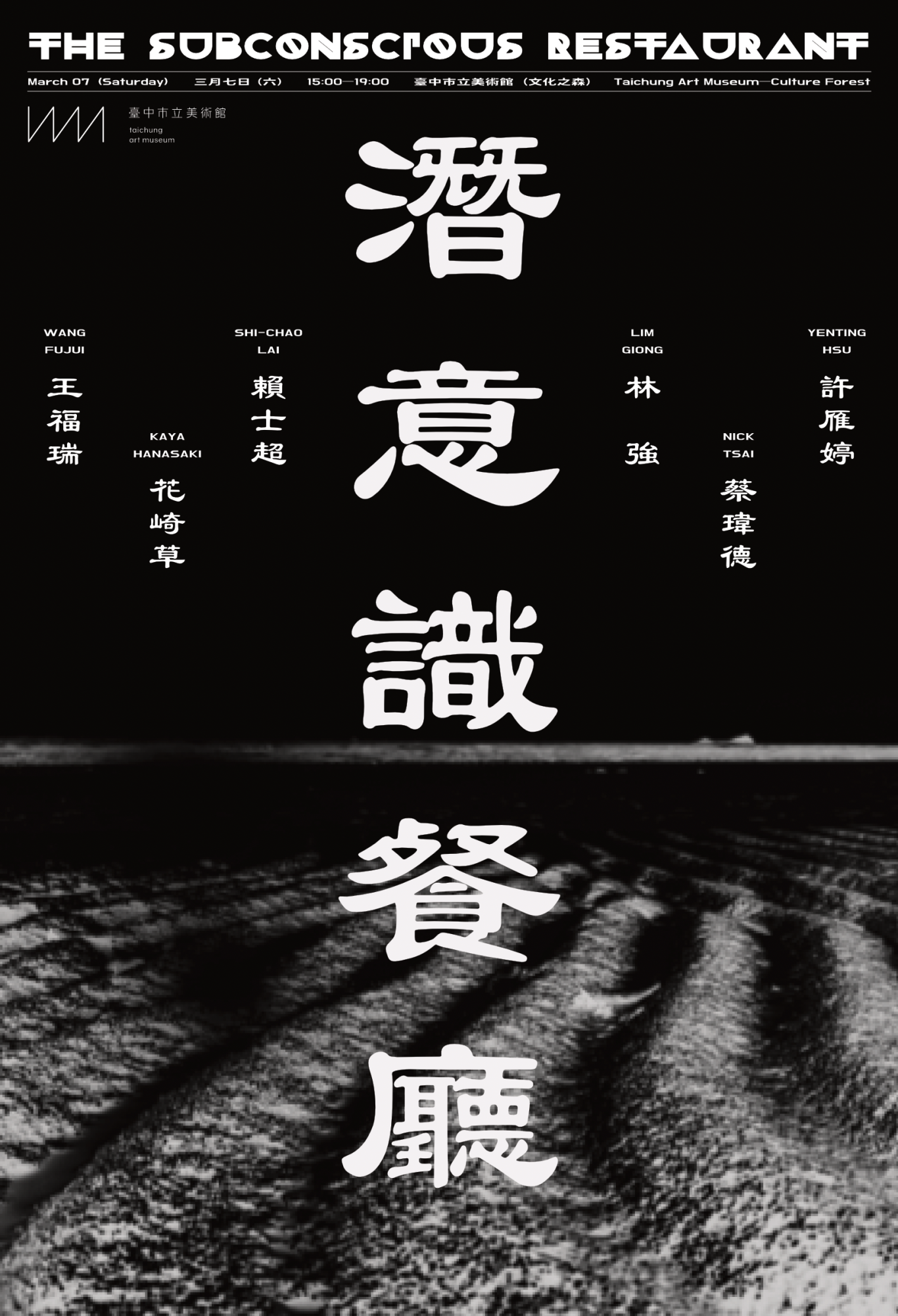 中美館表示,長期關注當代聲響藝術的獨立刊物《潛意識餐廳》在策展人艾蕾娜·克萊爾·費爾德曼(Alaina Claire Feldman)邀請下, 3月7日將於綠美圖半戶外屋頂花園「文化之森」舉辦戶外聲響演出。由台灣知名音樂人林強帶來融合電子聲響與田野採集元素的DJ演出,以層層堆疊的聲響紋理,回應土地記憶與城市節奏;同場還有王福瑞、許雁婷、蔡瑋德、賴士超,以及來自東京的行為藝術家花崎草(Hanasaki Kaya)共同演出,在中央公園綠意環繞的場域中,展開沉浸式聆聽體驗。