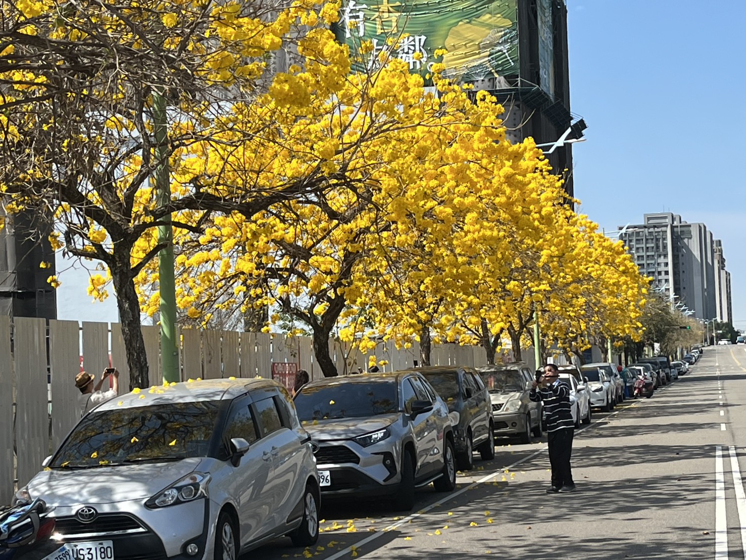 台中市春日花海接力綻放!隨著氣候逐漸回暖,各地黃花風鈴木陸續盛開,金黃色花海點綴街道與公園,吸引不少市民與遊客駐足賞花、拍照留念。台中市政府建設局表示,市長盧秀燕相當重視公園、道路景觀與公共綠地維護,持續打造兼具景觀美學與休憩機能的城市空間,讓市民在日常生活中也能感受四季更迭的自然風景。繼年初洋紅風鈴木以粉嫩色彩揭開春日序幕後,黃花風鈴木接棒綻放,為台中春季花季再添耀眼風景。