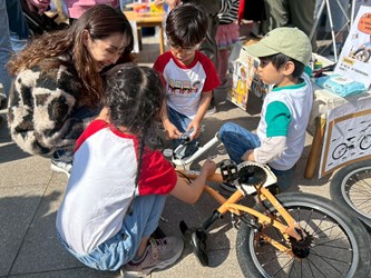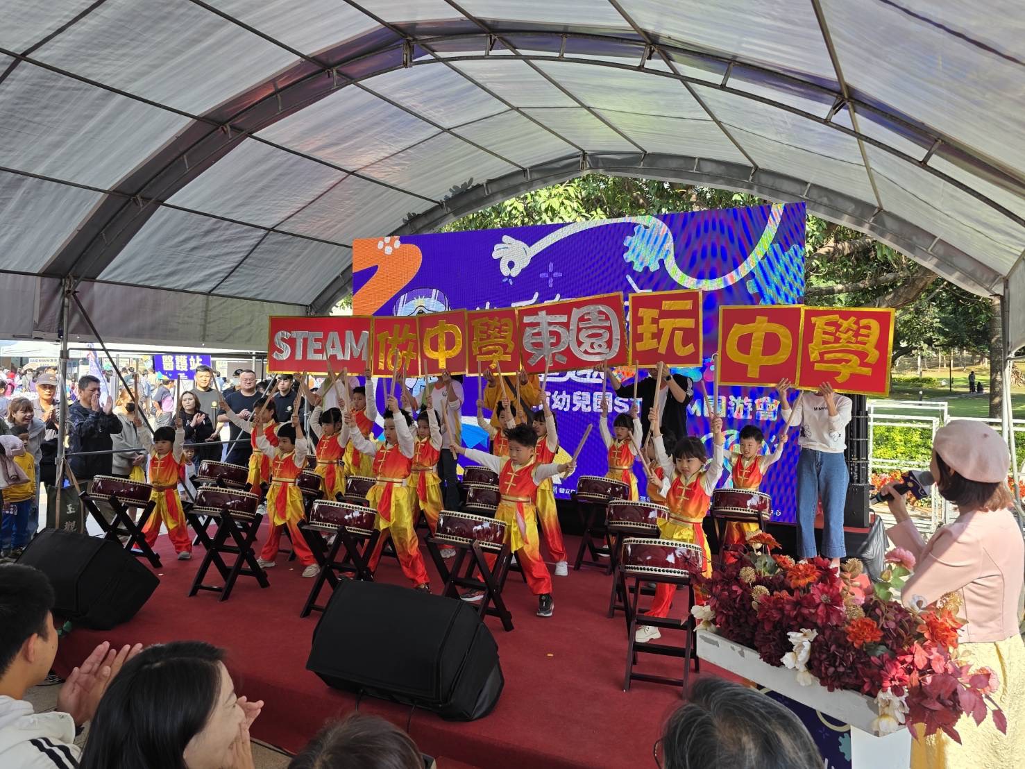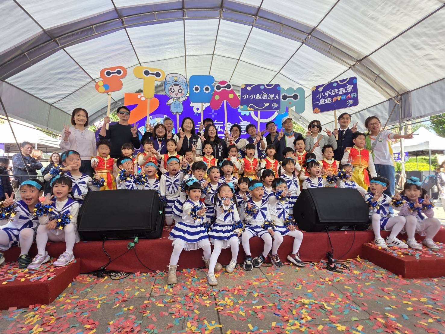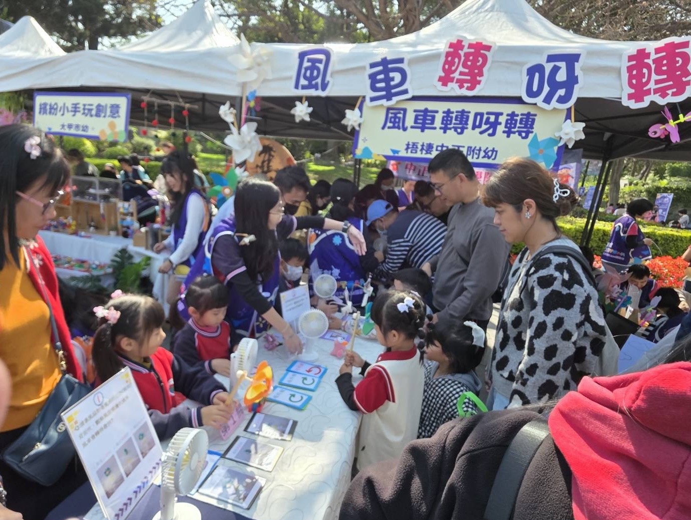 教育局說明,此次園遊會首創「親師生共構」體驗機制,由幼兒擔任「小小關主」親自進行示範與說明,讓孩子拿回學習主導權,以提升幼兒的探究能力,也強化了家長對公幼教保價值的認同。