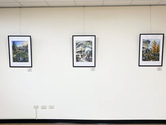 本次展覽作品皆以大明高中校園美景為主題,創作者以畫筆描繪校園的每一處風景,將所見的綠意、光影與人文氣息轉化為一幅幅動人的畫作。在色彩與線條之間,不僅展現校園景致之美,也流露出創作者對環境的細膩觀察與深厚情感,引領觀者走入畫中世界,感受大明校園四時流轉的詩意與青春洋溢的藝術氣息。