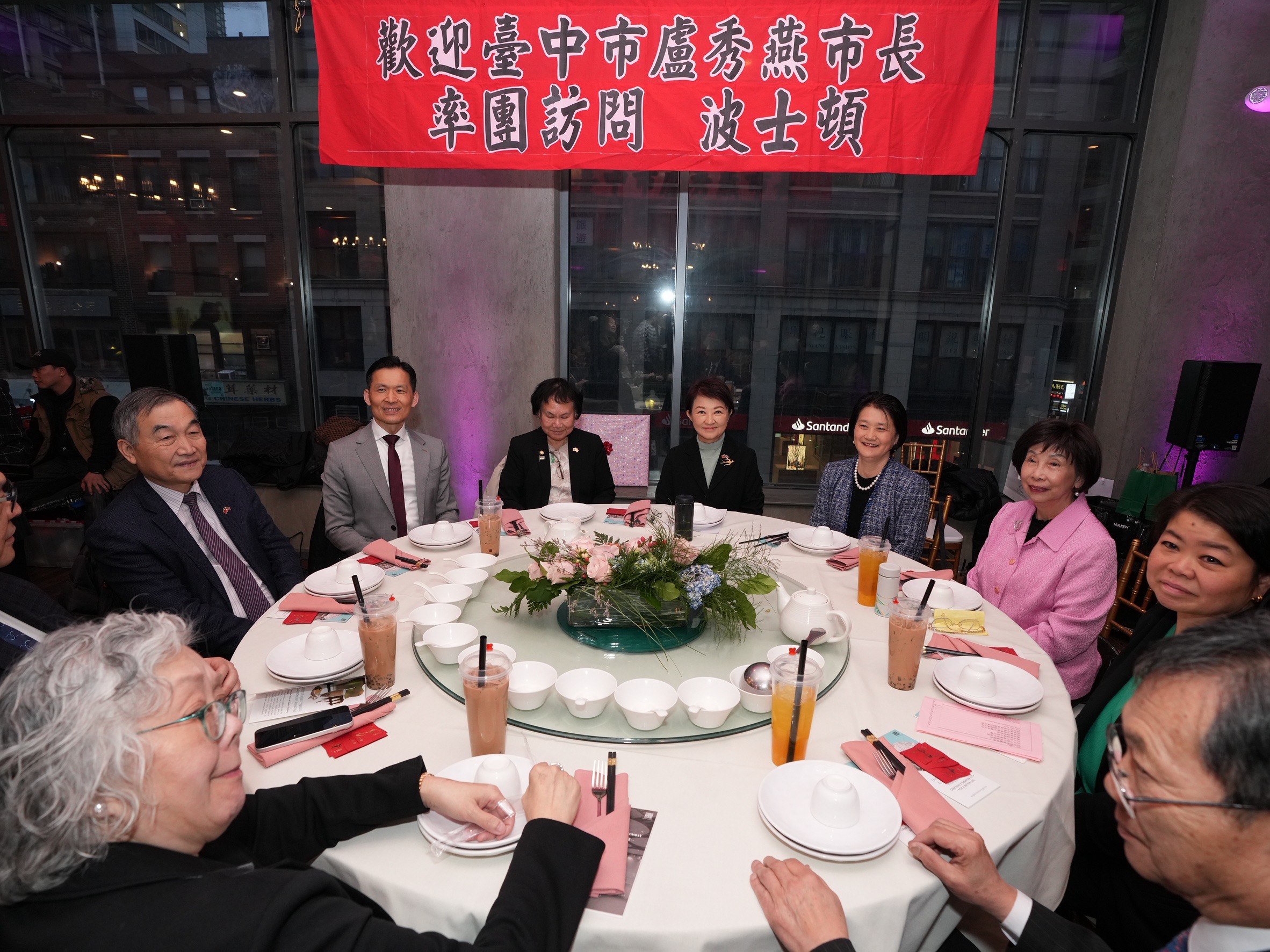 晚間僑宴席開20多桌,紐英崙中華公所主席雷國輝、紐英崙中華總會主席余麗瑛、僑務委員陳仕維伉儷、僑務委員郭競儒、紐英崙至孝篤親公所主席陳文珊、國民黨波士頓分部常委張韻蘭等波士頓僑界領袖多位當地僑領共同出席,駐波士頓辦事處廖朝宏處長、波士頓文教中心主任高家富也到場交流;現場氣氛熱烈,對台中發展成就表達高度讚許,並提供寶貴意見,象徵台灣與海外僑胞間深厚的情誼與合作潛力。