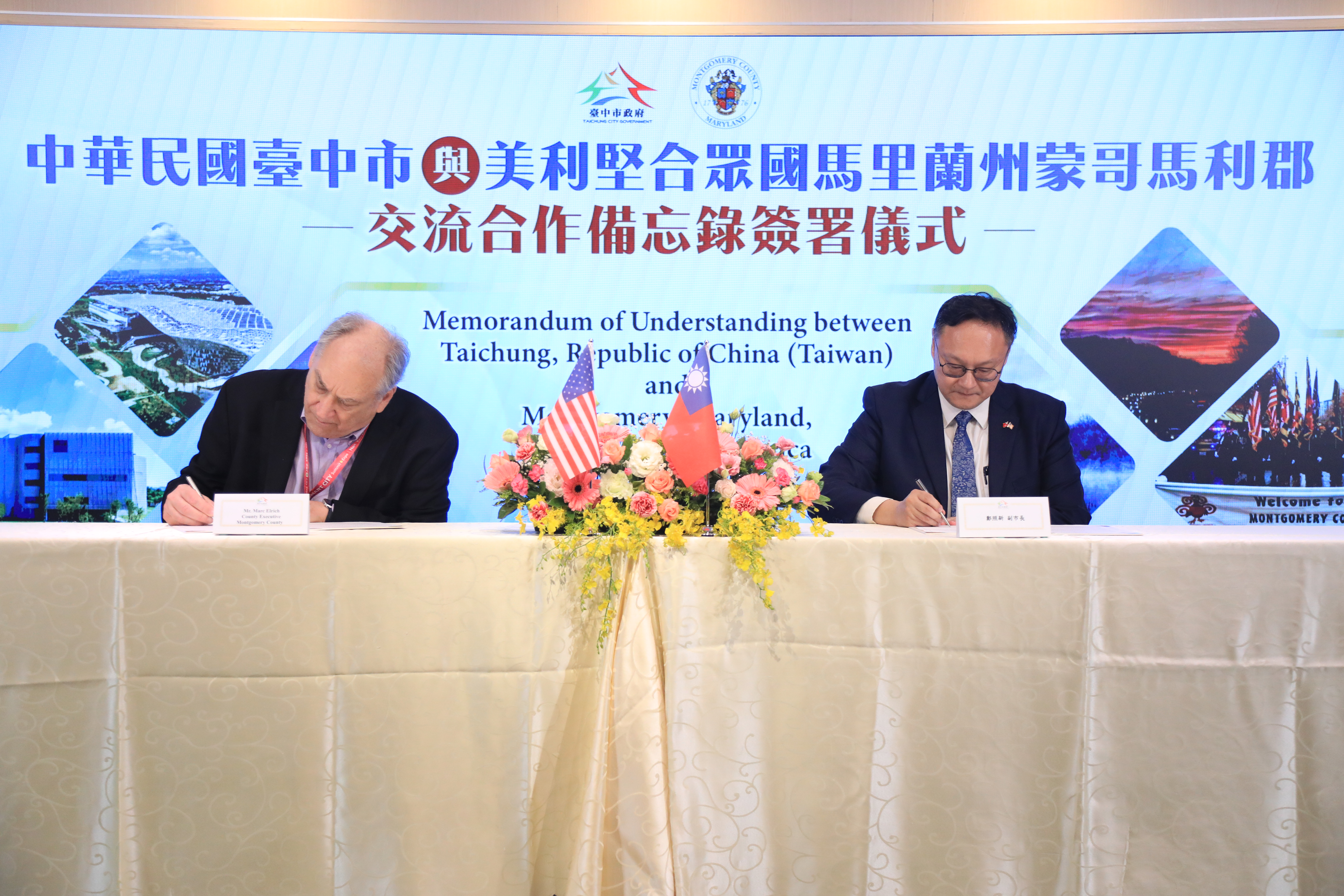 台中市政府持續拓展國際城市合作,副市長鄭照新昨(18)日與美國馬里蘭州蒙哥馬利郡(Montgomery County, Maryland)郡長艾瑞奇(Marc Elrich)共同簽署交流合作備忘錄,雙方將於人工智慧、生技醫療、智慧城市及經濟貿易等多元領域展開合作,攜手開創雙城發展新契機。