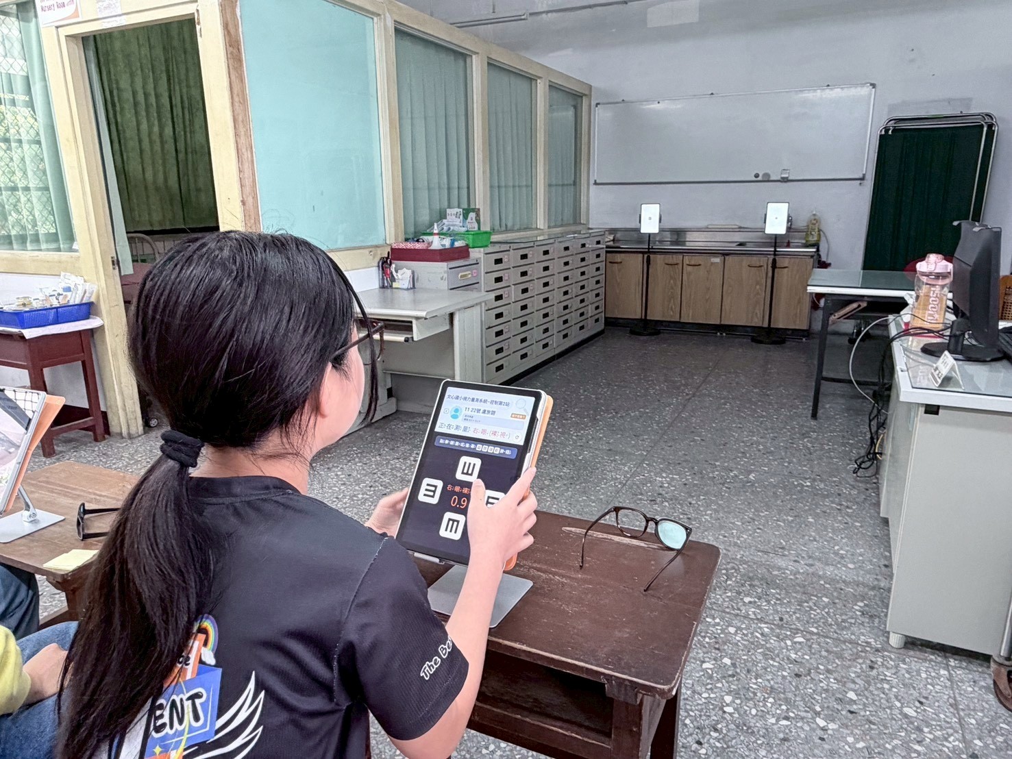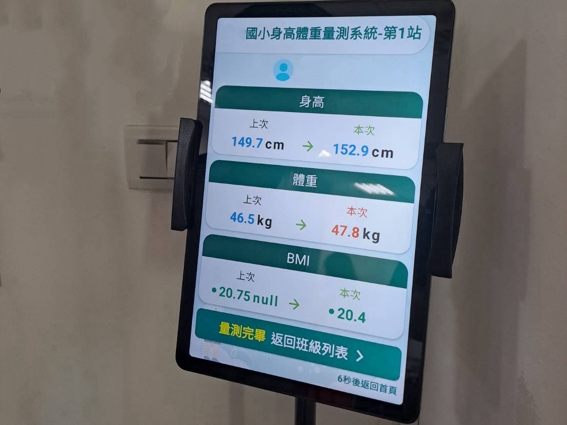 教育局說明,目前參與試辦的10所學校已全面配發自動化設備,包含兩組全自動視力檢查機及一組全自動身高體重機,系統搭配平板電腦進行身分識別,學生僅需在觸控螢幕點選名單即可啟動量測;量測完成後,數據透過無線傳輸即時同步,經護理師確認無誤後,即可一鍵上傳至教育部健康資訊系統,整個「量測—確認—上傳」流程一氣呵成,大幅降低重工風險與行政負擔。