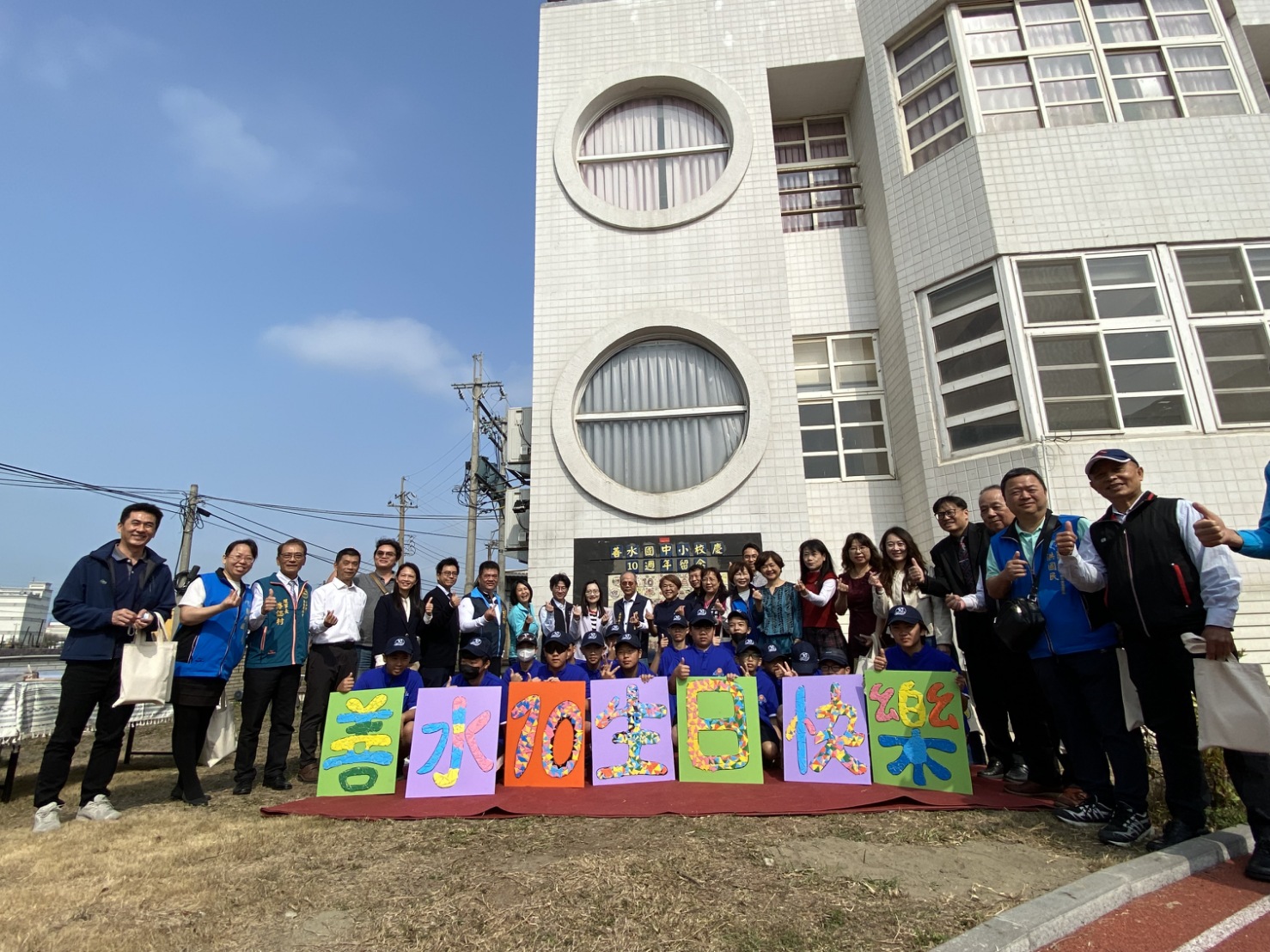 教育局分享,校方為慶祝創校10週年,特別邀請校歌作詞人羅能熙校長、作曲人張嘉亨校長及歷任校長蒞校,共同帶領師生齊唱校歌;現場並由師生團隊帶來催落曲舞蹈表演,舉行10週年紀念陶板牆揭幕儀式,並安排長青學堂長者演出及老少同樂活動,展現善水國中小充滿溫度與活力的校園風貌。