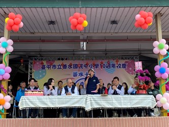 台中市首所安置型實驗學校—善水國中小今(20)日舉辦創校10週年校慶慶祝大會,全校師生、家長、地方仕紳、歷屆校長及校友齊聚一堂,共同慶賀學校邁入重要里程碑,現場氣氛溫馨熱絡。