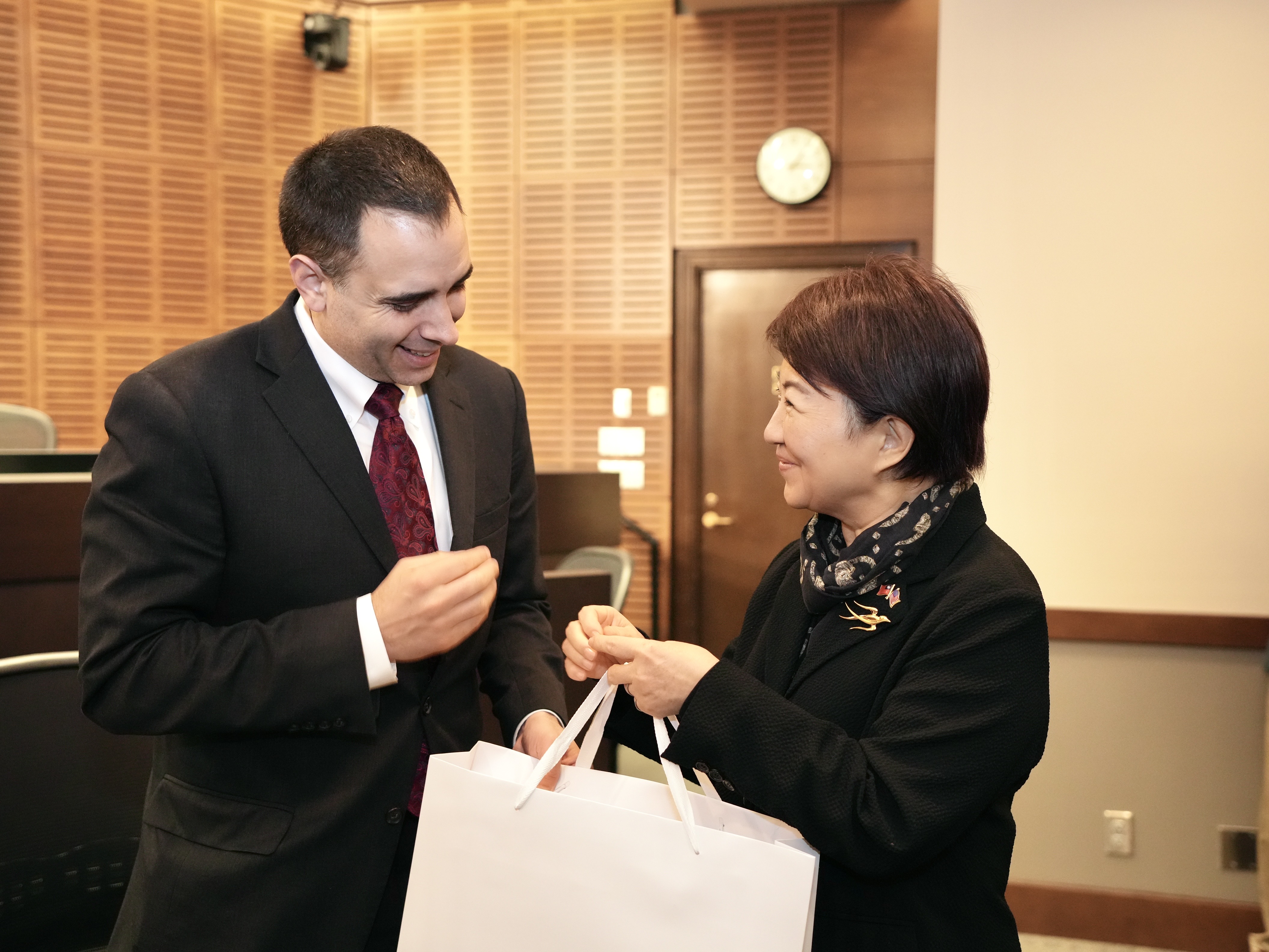 除不動產專業外,盧市長也對塔可瑪市長的藝術背景表達高度興趣,關心市政是否特別重視藝術層面。易卜生市長對於盧市長注意到這點感到非常高興。他表示,塔可瑪正進行一項藝術推廣計畫,在銷售稅的資源投入下,鼓勵青年發揮創意投入社區活化。盧市長對此表達高度肯定,這份「藝術為本」的施政視角,非常值得台中借鏡學習。