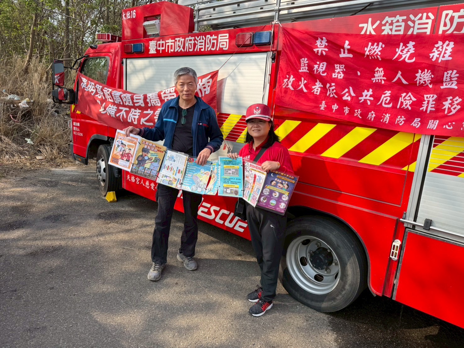鄭副市長表示,近期因天候乾燥加上民眾提前掃墓,台中市公墓及雜草火警頻傳,自今年1月統計至3月19日共發生雜草火警95件(其中包含墓地火警27件,燃燒面積4784平方公尺),讓基層打火弟兄疲於奔命。為確保清明節期間公共安全,消防局於重點假日編排高風險公墓區的駐點及巡邏勤務,日前也取締了10起違法燃燒雜草案件。鄭副市長特別感謝所有警義消同仁犧牲假日陪伴家人的時間,堅守崗位,並呼籲市民朋友在慎終追遠之餘,務必體諒消防人員的辛勞,改變傳統用火習慣,從源頭杜絕火災發生。