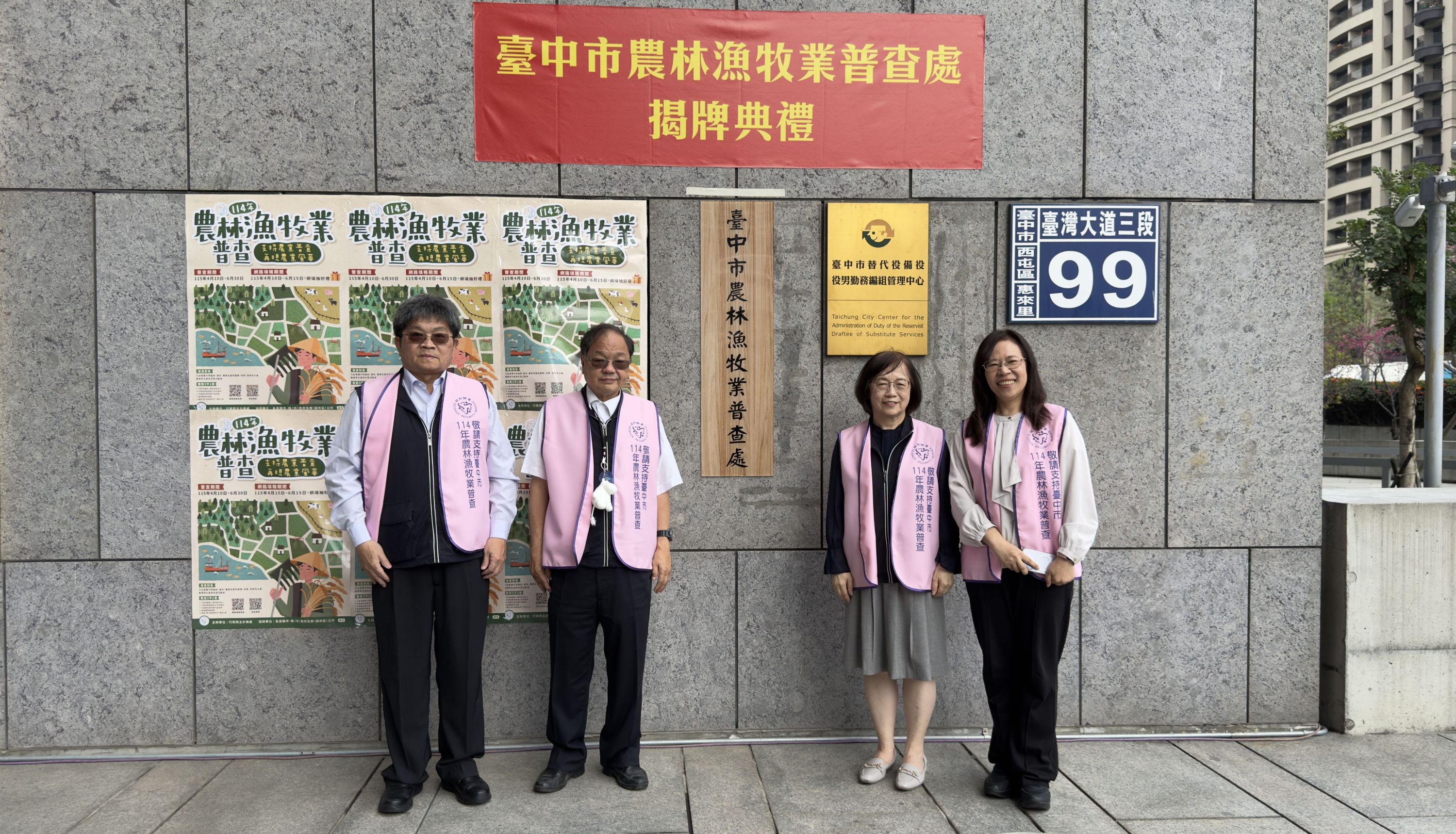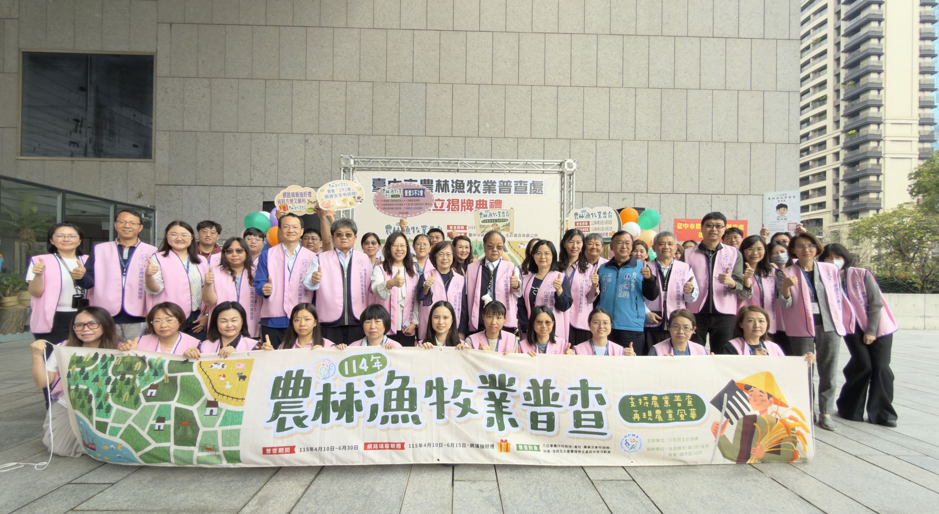 主計處表示,延續工商普查的斐然成績,每 5 年 1 次的農林漁牧業普查也將正式啟動,「台中市農林漁牧業普查處」於今年3月2日舉行成立揭牌典禮,這項重要的基本國勢調查自民國 45 年辦理以來已邁入第 15 次,更是中央制定全國農業政策、資源配置與永續經營方針的最核心參據。典禮主持人副市長賴淑惠強調,農業是國家的立國根本,更是確保糧食安全與應對氣候變遷的防線。