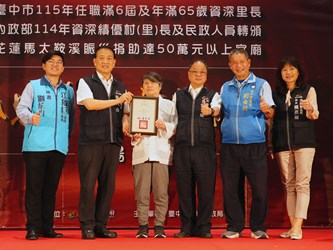 張副秘書長表示,里長是市府與市民之間最重要的橋梁,也是地方最即時、最溫暖的依靠,無論是社區建設、弱勢關懷、政策推動,或災害發生時的第一時間應變,里長總是站在第一線,協助市府穩定地方、照顧市民。尤其任職滿6屆且年滿65歲的資深里長,更代表20多年來不間斷的投入與奉獻,不僅見證地方成長,更以數十年如一日的堅守,成為推動台中持續向前的重要力量。
