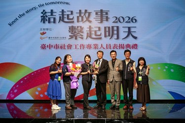 為響應4 月2日台灣社工日,台中市政府社會局今(27)日舉辦「台中市社會工作專業人員表揚典禮」,表揚58位優秀社工及3家執業安全成效優良的社福團體。社會局副局長林資芮感謝不同領域的社工夥伴們,以專業評估需求、耐心陪伴家庭及行動守護弱勢,在各個角落編織出綿密而溫暖的社會安全網,也讓台中成為更有溫度的城市。