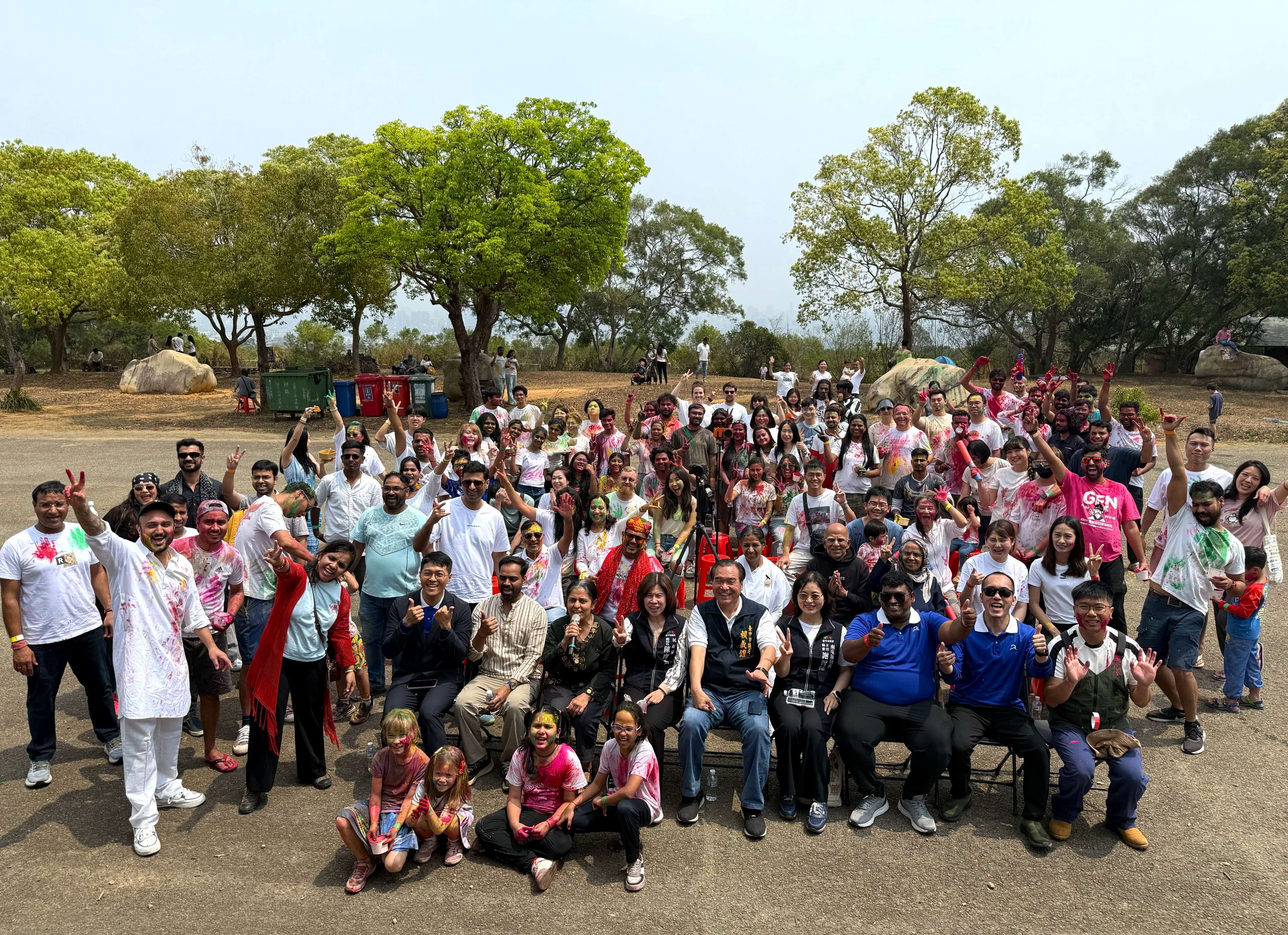 活動現場氣氛熱烈,民眾在白陽山360度開闊景觀中盡情揮灑色彩,透過顏料水球與水槍互相傳遞祝福,在繽紛水霧中感受春日活力。現場邀請印度DJ帶來寶萊塢電音舞曲,帶動全場熱情舞動,並提供印度拉茶及蔬食烤餅等特色美食,讓參與民眾在歡樂互動中也能品味道地異國風味。