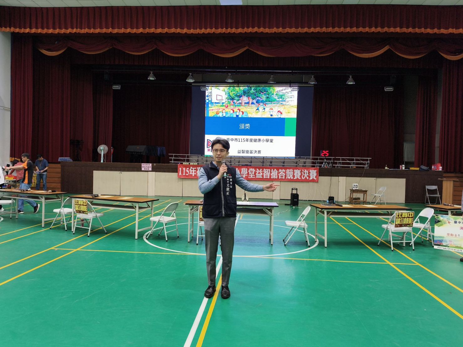 台中市校園健康促進盛事之一「115年度健康小學堂益智搶答競賽」全市總決賽,今(30)日上午於南屯區大新國小熱鬧登場,歷經中、屯、山、海四大區分區初賽的搶答激戰後,選拔出14所國小菁英隊伍進入今天的決賽展開終極對決,現場搶答戰況激烈,最終由南屯區大墩國小憑藉紮實的健康促進素養與驚人反應能力,拿下冠軍寶座,獲封115年度「健康知識王」!