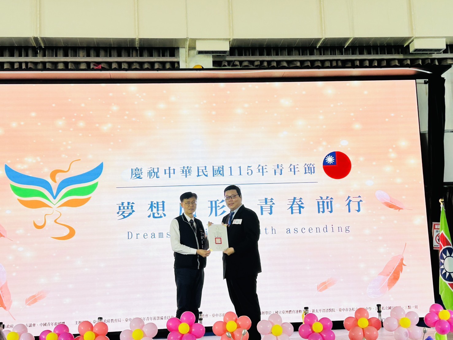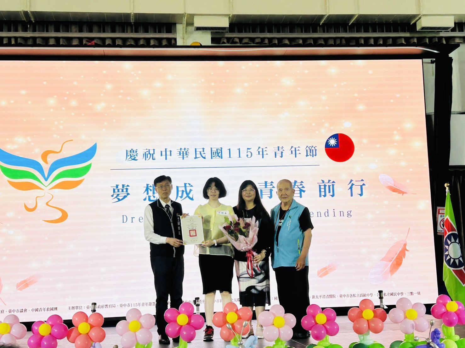 台中市救國團委會說明,今年青年節以「夢想成形 青春前行」為主題,象徵青年將理想轉化為行動,透過持續努力與累積,逐步實現人生目標,展現積極進取、勇敢迎向未來的精神。