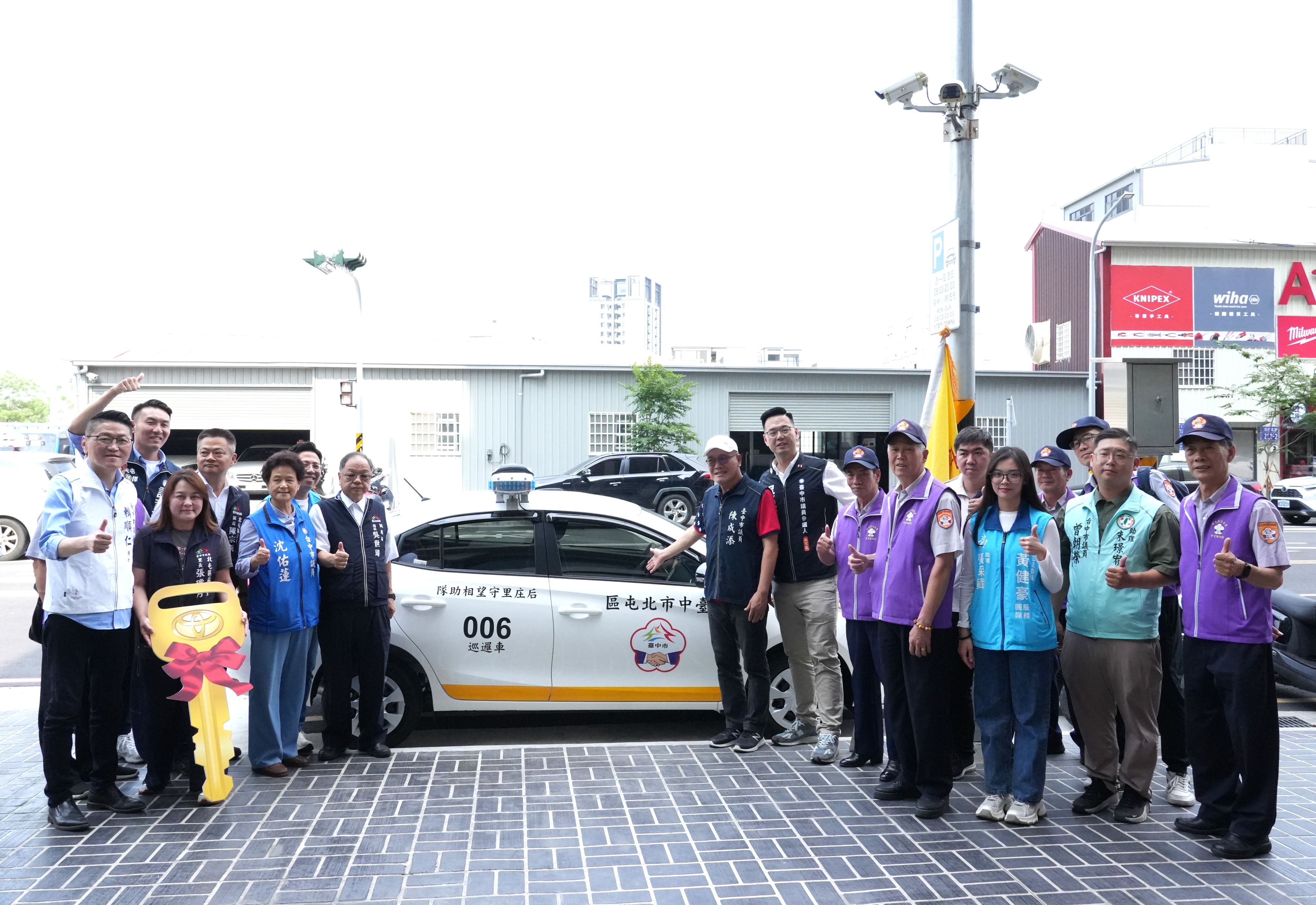 為提升巡守執勤安全,台中市政府補助北屯區后庄里守望相助隊購置全新巡邏車1輛,今(2)日在后庄里辦公處舉行交車典禮,由民政局長吳世瑋代表市長盧秀燕主持儀式,感謝里隊隊員長期辛勞奉獻,嶄新巡邏車正式加入巡守行列後,不僅為后庄里鄰里安全再添堅強戰力,也展現市府持續支持基層守望相助工作的決心。
