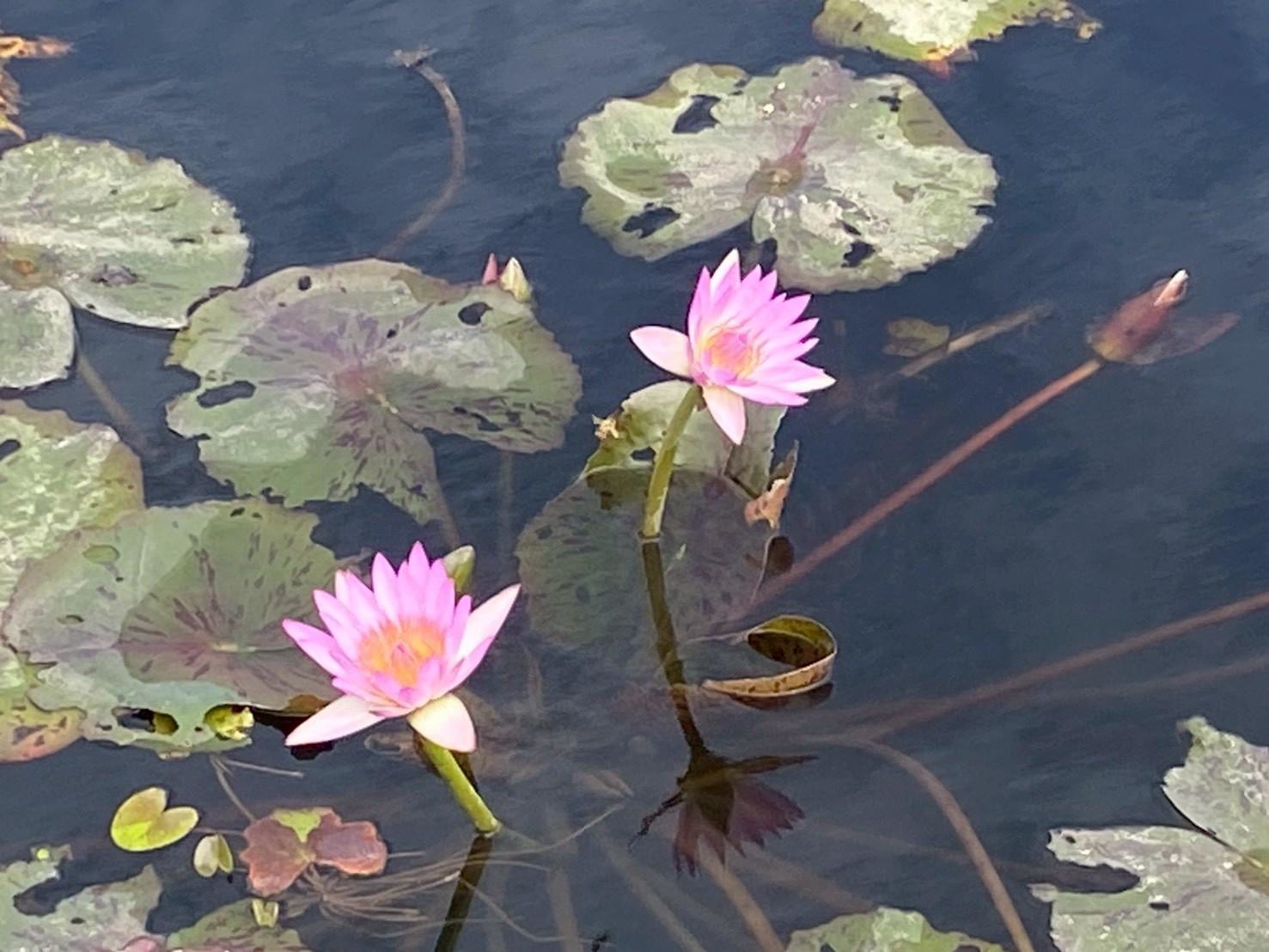建設局長陳大田表示,后里環保公園占地約17公頃,結合生態景觀與多元休憩機能,園區設有林蔭步道、寬闊草坡及寵物專區等空間,提供市民散步、野餐、遛狗及親子活動的友善環境。園內蓮花池面積廣闊,每年自2月下旬陸續綻放,花期可持續至9月中旬,長達半年以上,讓市民從春天一路欣賞至盛夏,感受城市中的自然節奏與四季更迭。