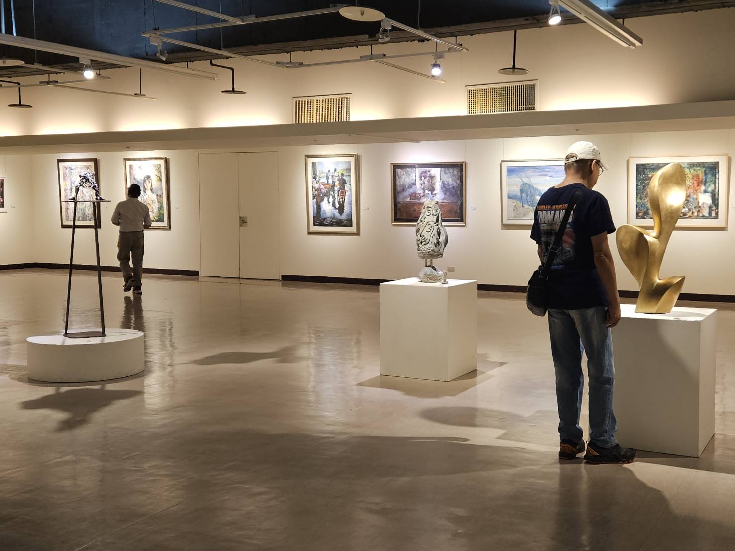 此外,各類首獎作品亦各具特色、表現亮眼:膠彩部顏艷玲於《貓生拼圖》中,以流浪貓在未知環境中尋覓生存之地為主題,猶如在混亂中拼湊遺失的圖塊,透過層層烘染,生動描繪出貓咪多樣而靈動的姿態;油彩部林祐恩《潛夢》以穩重的超現實空間構圖,展現深層意境;書法部顏國順《吳德功詩梧棲歸帆》書體運用多元,風格豐富;攝影部林連瑜《靦腆-抽象隱喻之印象》藉由殘荷意象,傳達出中國水墨畫的詩意韻味;雕塑部范鴻川《平行時空》展現對空間層次的深刻想像;水彩部黃煜炘《祈福》筆觸層次分明,善於掌握光線流動與明暗變化,營造出靜謐而真誠的祈福氛圍,皆為一時之選的精彩佳作。