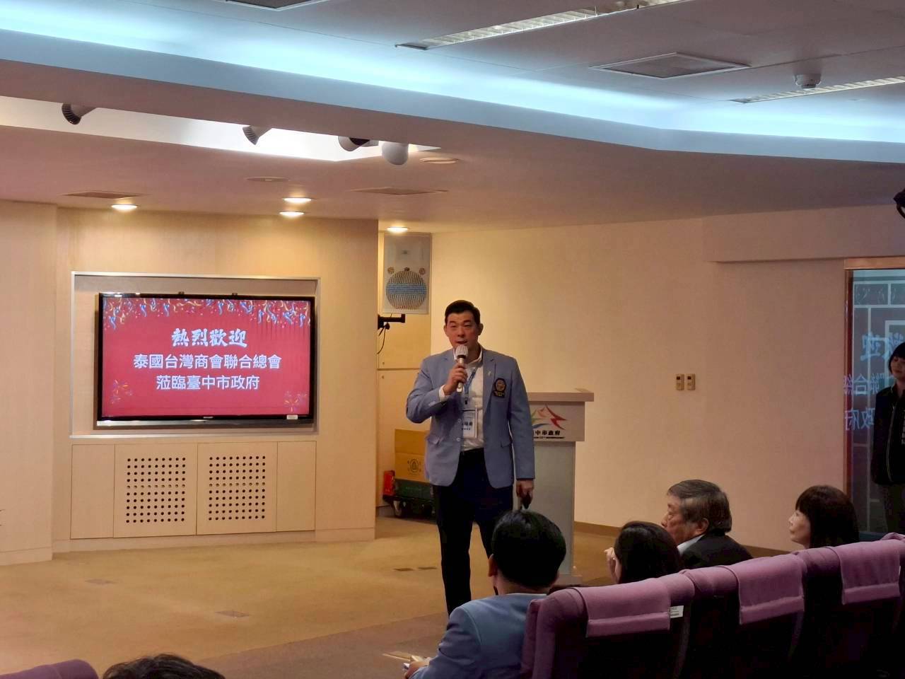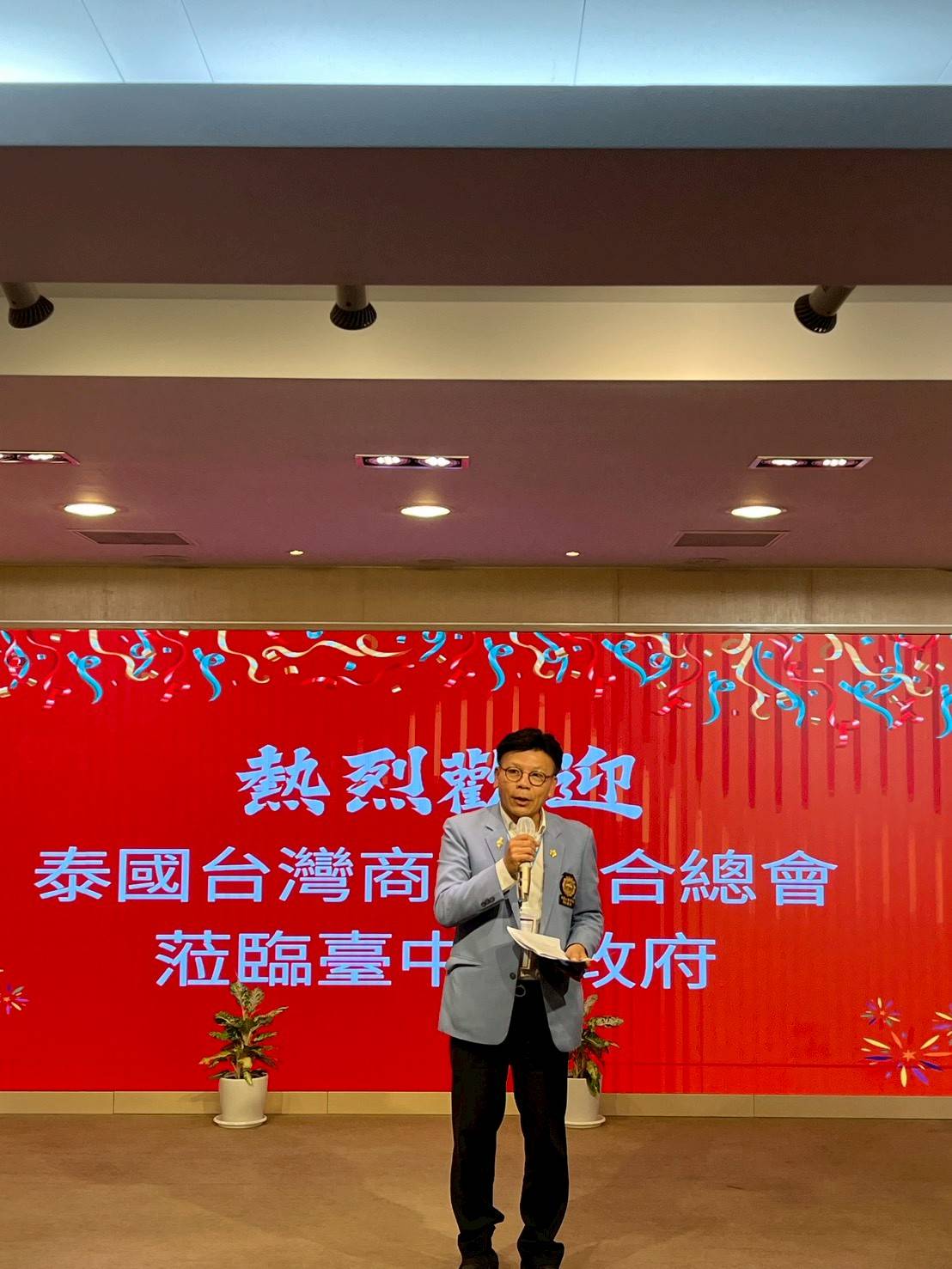 泰國台灣商會聯合總會陳漢川總會長昨(14)日率團回訪台中市政府,由副市長黃國榮接待,台中市政府經濟發展局表示,此次交流聚焦台泰投資環境及多元合作發展,黃副市長也肯定泰國台灣商會長期凝聚海外台商力量,為連結台灣與泰國的重要橋樑,對深化雙方合作具有關鍵意義。