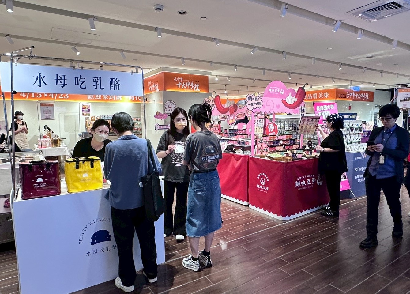 工策會說明,此次參展品牌橫跨甜點、養生、風格選品及在地佳釀,包括十大伴手禮首獎品牌水母吃乳酪、玄羽皇家滴雞精、sNug給足呵護、丸文食品觀光工廠,以及台中好禮辣味豆哥Chilisman、多利多天然食品、品醋迷PINTRUE、百瑞酒莊等,展現台中產業多元且創新的能量。各品牌亦推出展場限定優惠,打造期間限定消費亮點,吸引民眾駐足選購。
