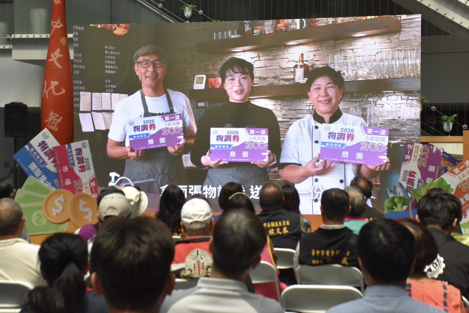 物調券來了!延續歷年回收率高達99.7%的亮眼成果,台中市今年第一波「物調券」將於4月24日至4月26日登場,民眾可用100元兌換200元物調券,預計發放35萬份,持續帶動市場、夜市與商圈買氣升溫,為在地經濟再添動能。台中市政府經發局今(17)日舉辦宣傳記者會,除說明發放方式,也首度公開宣傳影片,透過影像展現政策效益,邀請民眾把握機會「用100元放大消費力」。