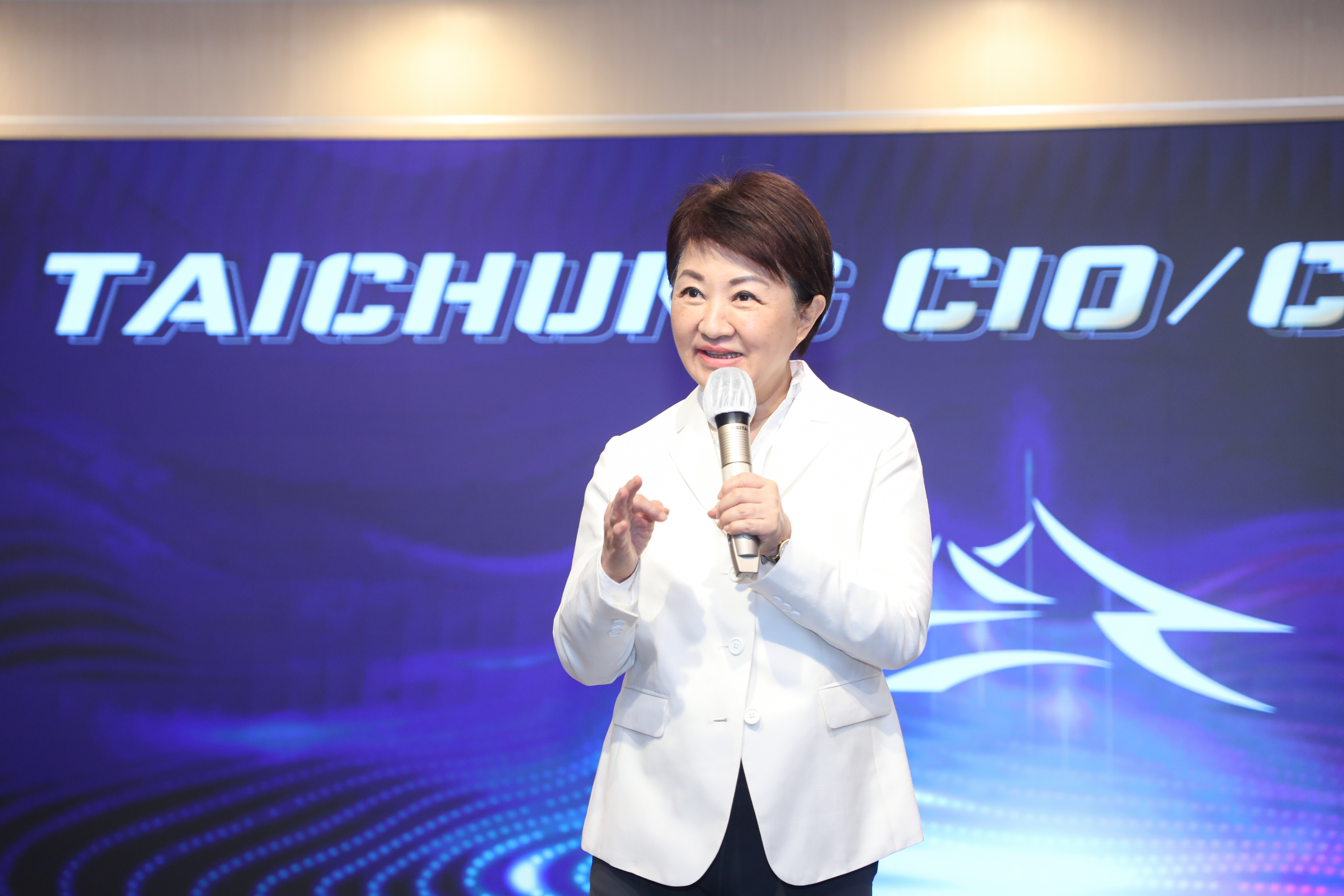 「AI力就是台中領先的城市競爭力!」盧市長致詞指出,在AI浪潮席捲全球的今日,在座的各位是她最期待見到、最想合作、也最想拜託的人,面對全球數位轉型挑戰,台中採取「主動出擊」的策略,不僅率先成立全台第一個地方政府的「數位局」,在施政過程也高度運用數位處理市政的管理,如地稅局運用 AI處理稅務、環保局透過AI科技精準抓捕烏賊車、數位局台中通APP等,將數位治理提升至市府的核心施政工程。