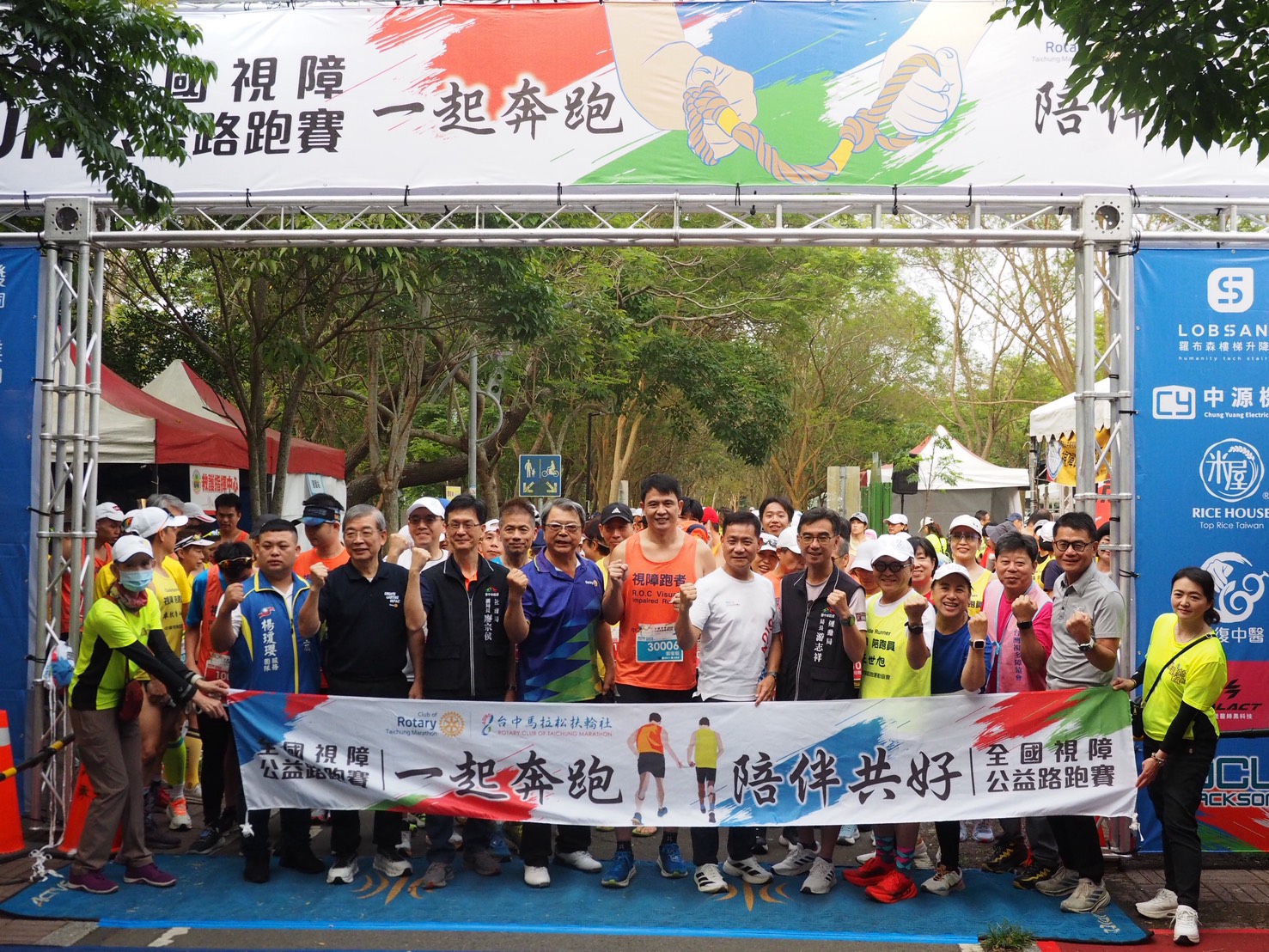 今日活動,台中市政府運動局長游志祥、社會局副局長廖宗侯、台中馬拉松扶輪社社長蔡欣儒、創社長汪世旭、國際扶輪3461地區總監蔡陽明、社團法人中華視障路跑運動協會理事長郭俊毅、惠明視障者教養院院長甘淑娟、台灣視多障協會理事長張世勳、社團法人台灣視障慈善協會理事長劉素貞、維他露基金會執行長詹益榮等人皆到場共襄盛舉。