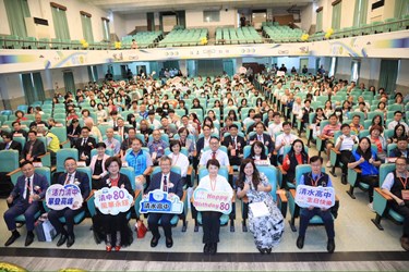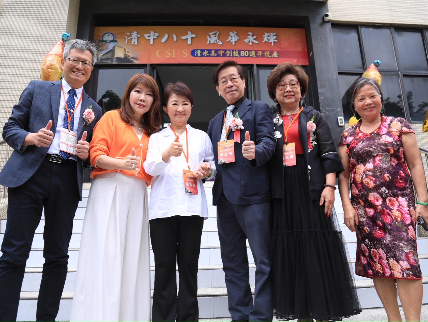 今日清水高中80週年校慶,市長盧秀燕親自出席,立委楊瓊櫻、市議會副議長顏莉敏、市議員王立任、教育局長蔣偉民及清水區公所主任秘書王培軒也出席與會,另立委何欣純、蔡其昌、市議會議長張清照及市議員楊典忠、陳廷秀皆派代表出席與會,貴賓雲集一同祝賀清水高中創校80週年生日快樂。