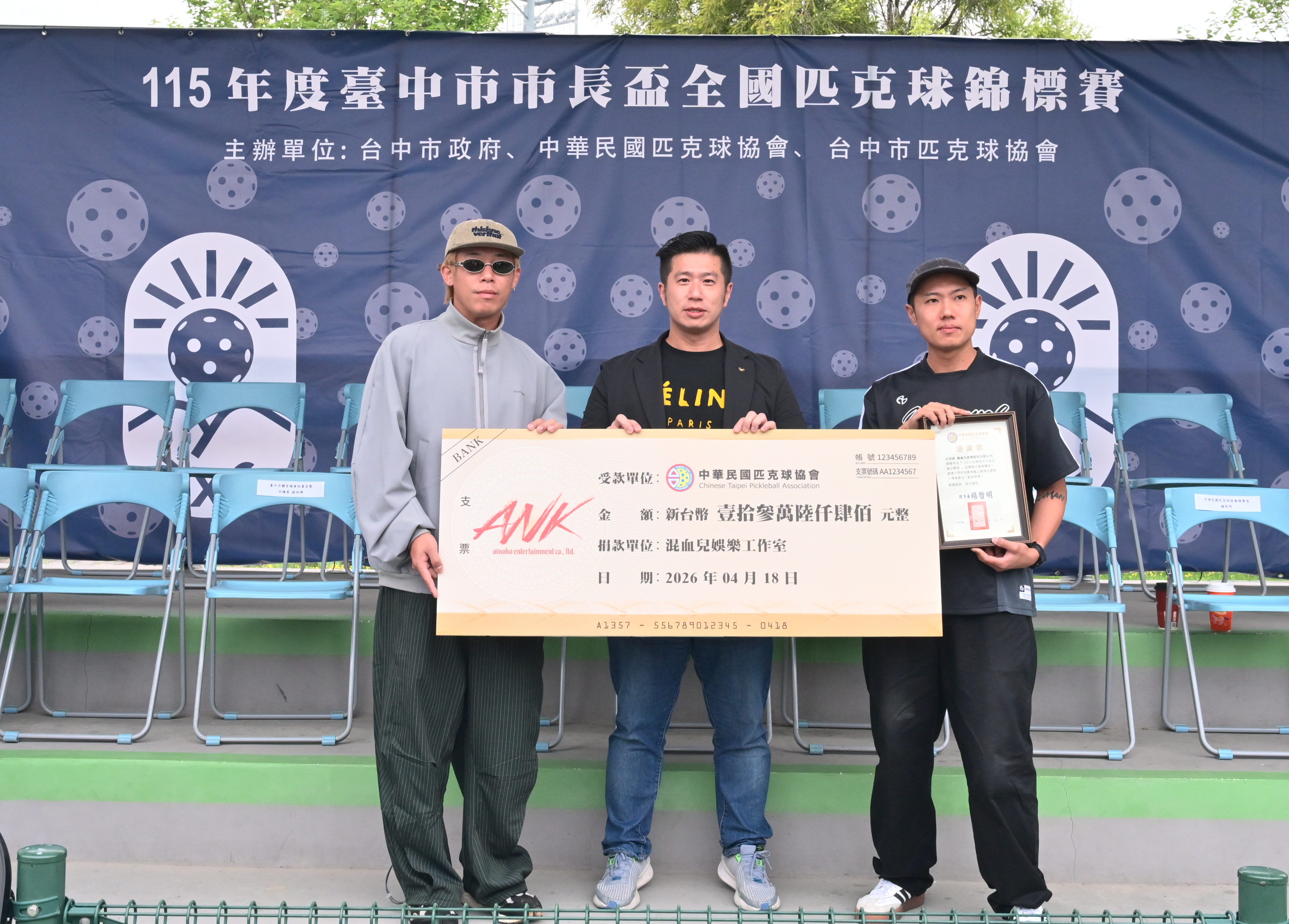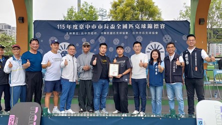 台中市新興運動匹克球熱度持續升溫!由台中市政府運動局攜手台中市匹克球協會及中華民國匹克球協會共同主辦的「115年度台中市市長盃全國匹克球錦標賽」,今(18)日於台中市國際網球中心熱鬧登場,吸引全國約400名選手參賽,年齡橫跨10歲至65歲;知名樂團玖壹壹成員洋蔥與健志也驚喜現身開幕典禮,並由大會頒發聘書聘請洋蔥(陳皓宇)擔任中華民國匹克球協會副理事長,透過藝人影響力帶動全民關注,為賽事增添亮點。