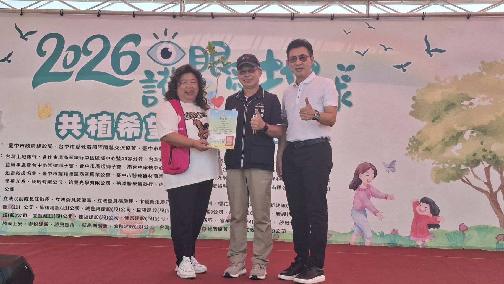 建設局說明,活動除植樹外,現場也規劃護眼操教學、視力保健宣導、反詐騙宣導及公益發票募集等多元內容,其中募集發票將全數捐贈南台中家扶中心,協助弱勢兒童。透過實際行動帶動市民參與,讓永續理念向下扎根,擴大環境與公益雙重效益;未來也將持續結合民間與企業資源,推動兼具環境教育與公共參與的綠化措施,穩健邁向永續城市目標,打造更健康、安全且充滿綠意的幸福台中。