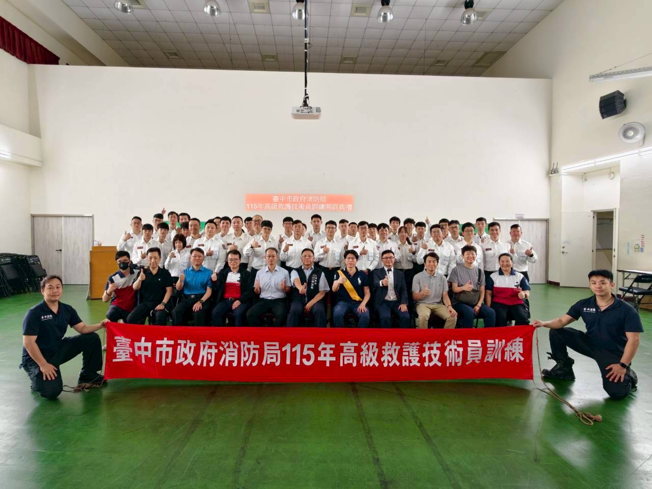 為持續提升台中市到院前緊急救護品質及能量,市府消防局委託中國醫藥大學附設醫院辦理「115年高級救護技術員訓練」,並於本(20)日上午9時30分在豐原訓練中心4樓盛大舉辦開訓典禮。典禮由消防局簡任技正林黎銘主持,並邀請中國醫藥大學附設醫院課程負責人醫師劉健佑及多位醫療指導醫師共同參與,期盼藉由嚴謹的專業訓練,持續充實台中市高級救護量能。